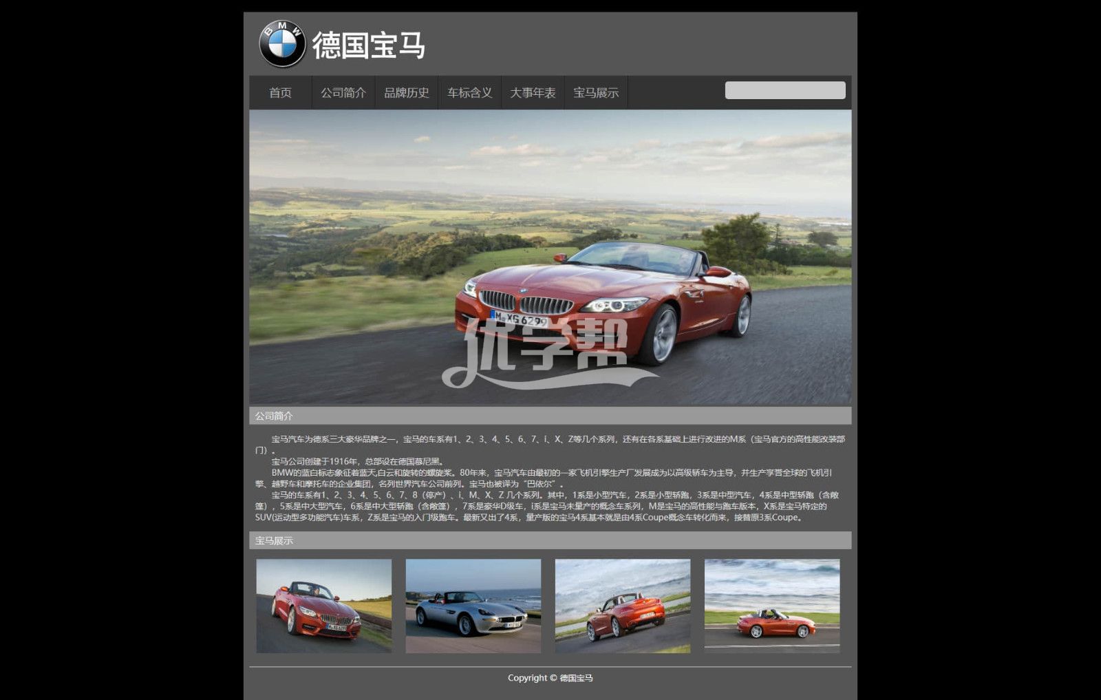 宝马汽车网站介绍6页,简单布局