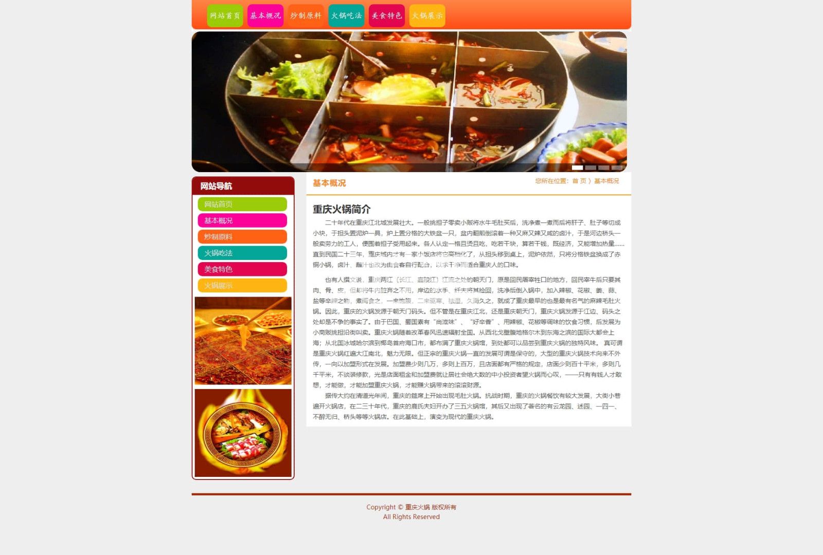 6页重庆火锅主题网站,简单布局div+css