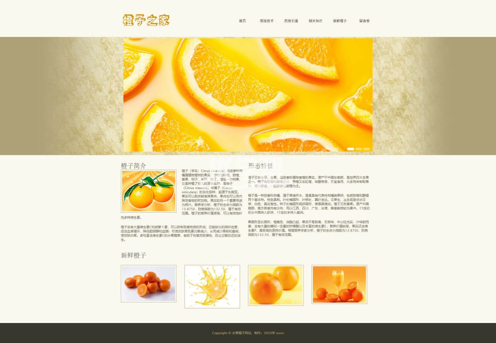 水果橙子网站,6页简单布局div+css