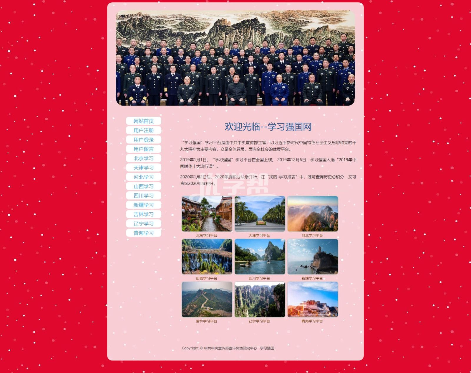 学习强国登陆注册留言,后台管理会员管理留言 ,数据库是access。后台语言asp。主要功能是:登录注册留言,后台管理留言 、管理注册会员。网站带js轮播图效果