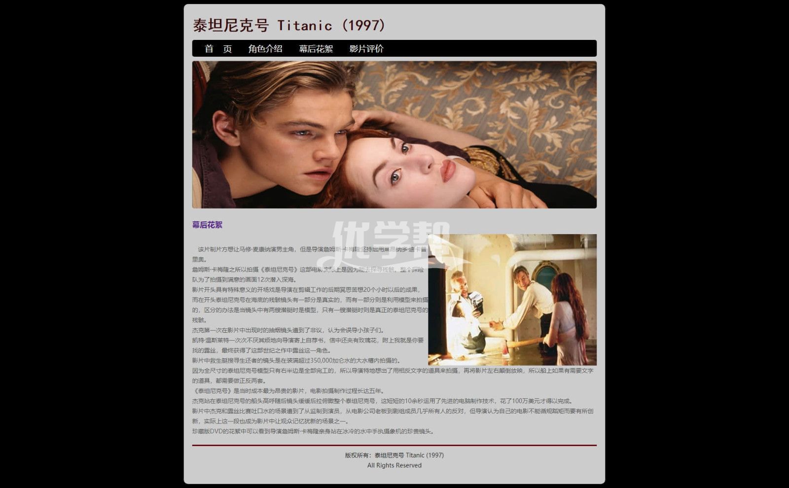 4页泰坦尼克号,滚动图片。背景音乐,布局简单,适合初学者,使用dw软件制作