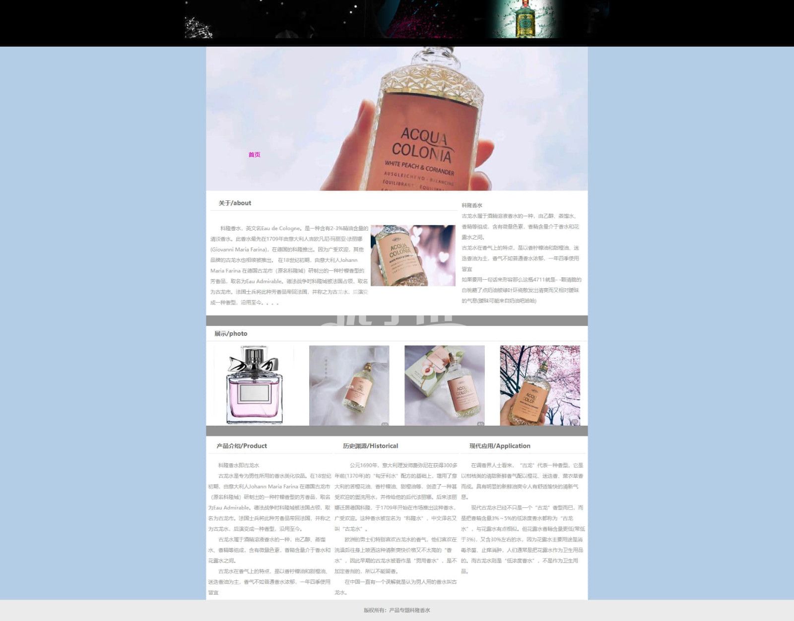 单页科隆香水网站,div+css简单布局