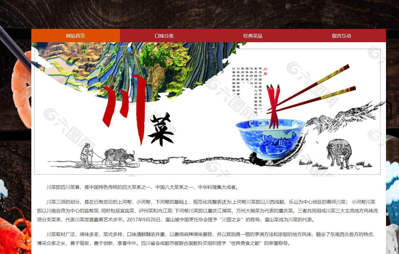川菜网站4页 .采用div+Css布局 使用dw软件制作。