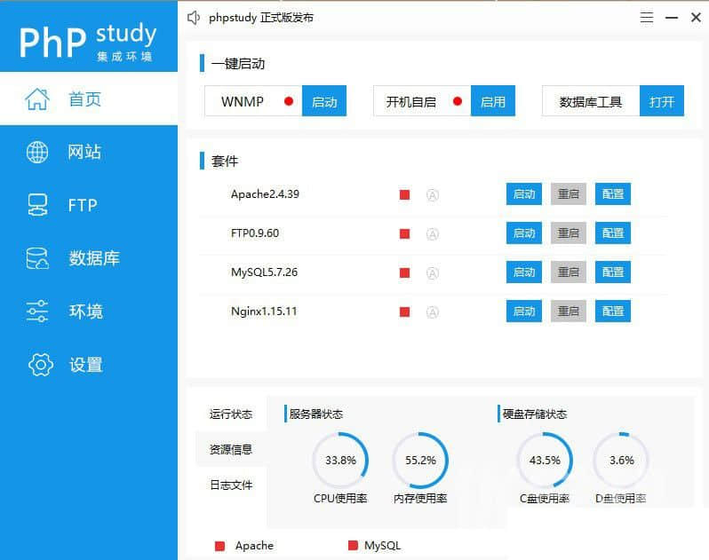 电脑如果要执行php+mysql的程序,一定要先安装运行环境,推荐使用集成安装包的方式安装环境,比如:APMServ5.2.6 、WampServer、PHPstudy、xampp、appserv等等(这些东西本质都是一样的)。如果没有指定的要求,建议安装PHPstudy这个集成环境,这是我用过的比较简单好用的环境之一!