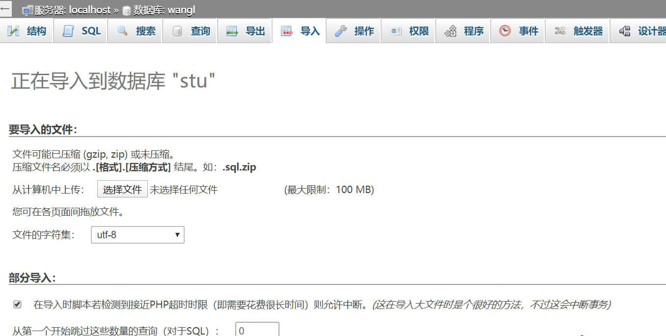 3、程序包根目录有个扩展名是.sql的文件,这就是数据库文件,导入这个文件到你新建的数据库中即可。