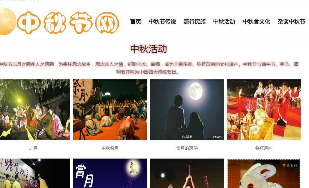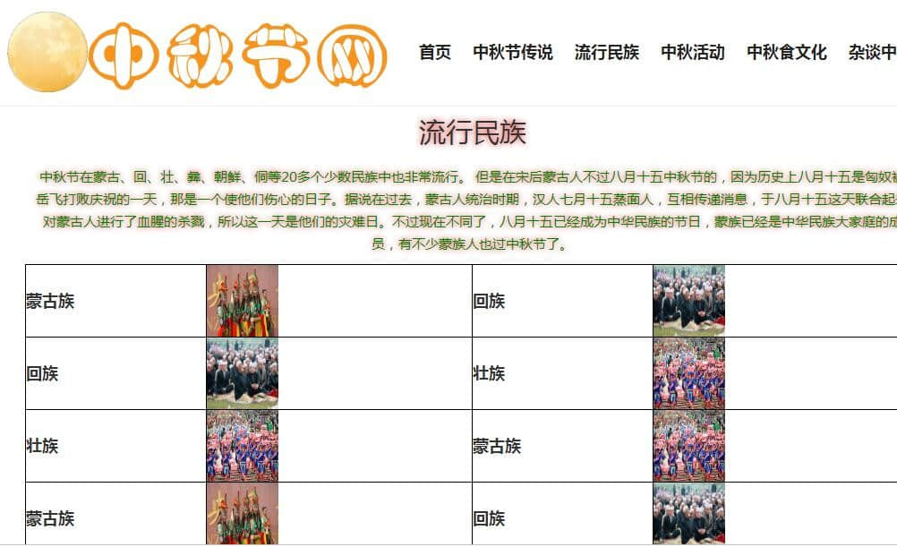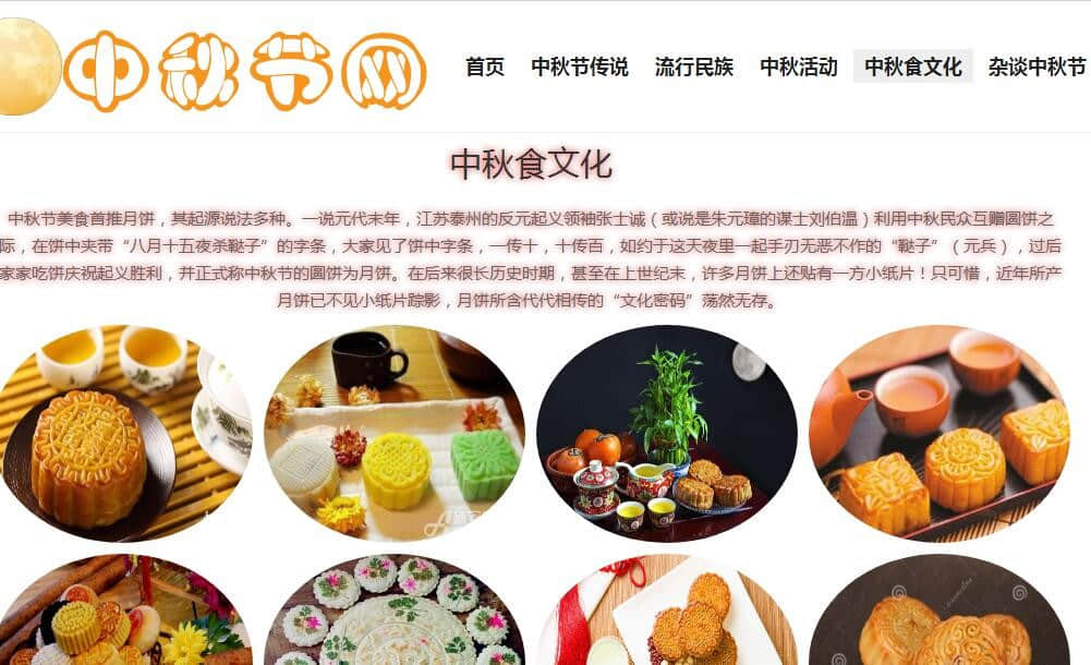 中秋节网6页,采用div+css布局。使用了html中 marquee滚动标签。带有设计报告。可修改 |