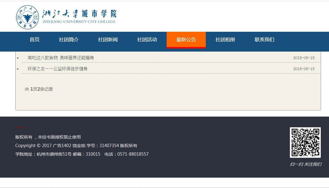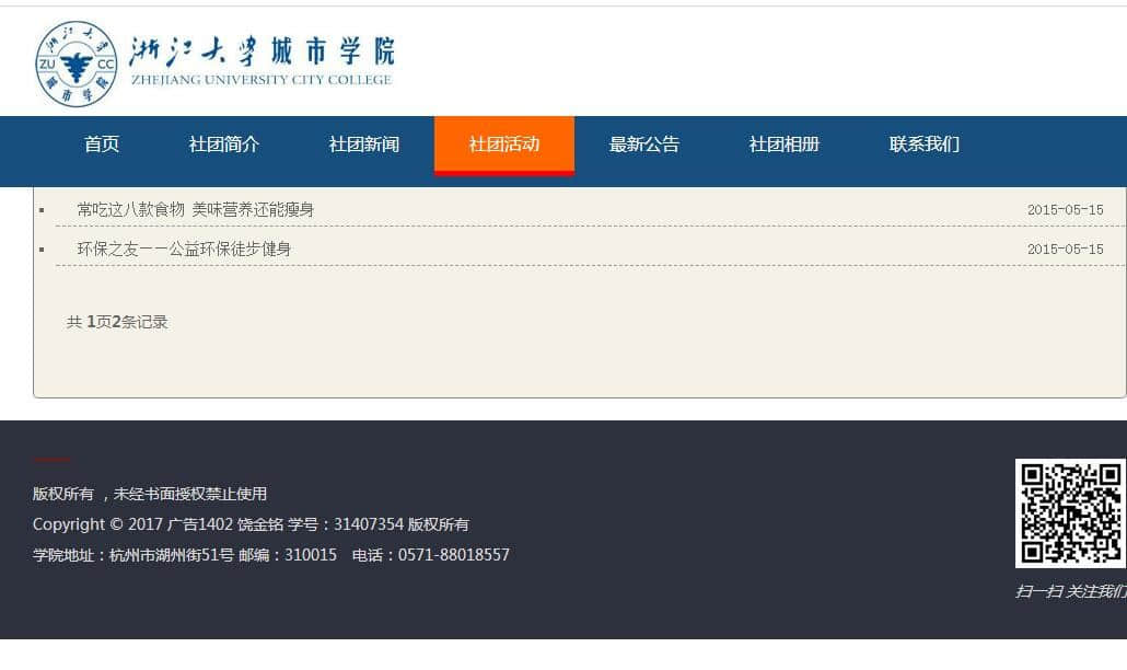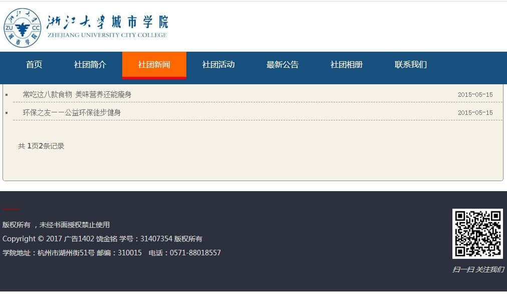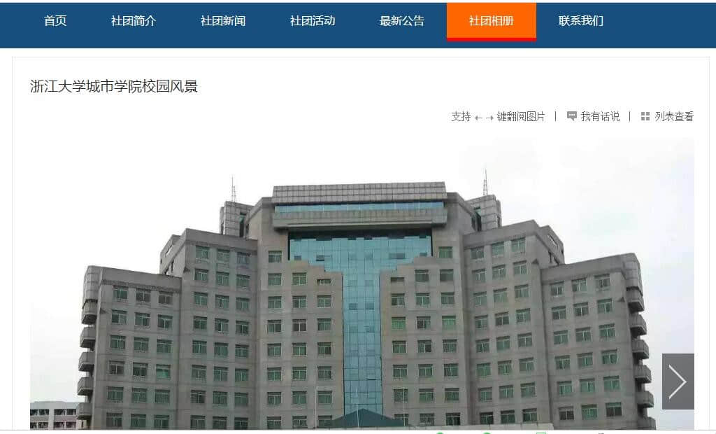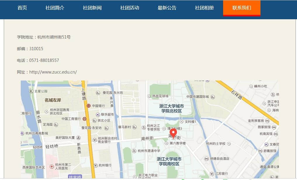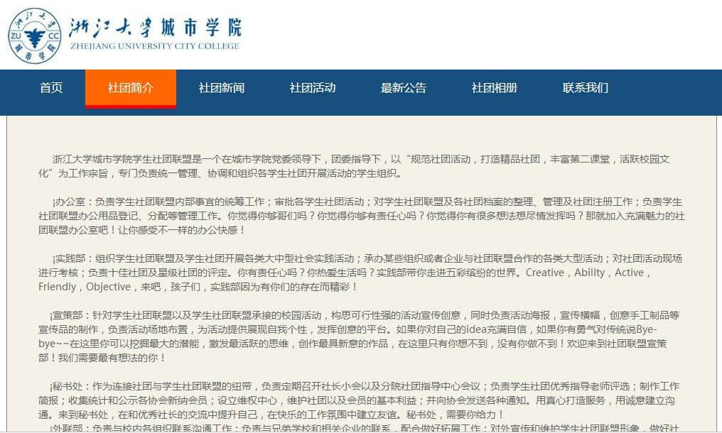 浙江大学城市学院社团网站8页 ,布局简单 |