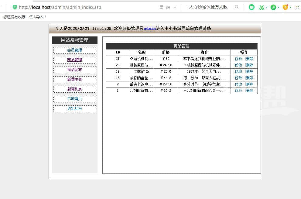 小小图书网,asp动态网站,带登陆注册 |