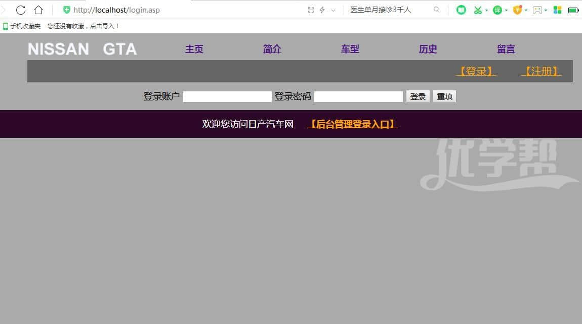 汽车主题网站,带登陆注册留言 后台管理留言功能,适合初学者,使用Dreamweaver软件制作。数据库是access,后台程序是asp语言 |
