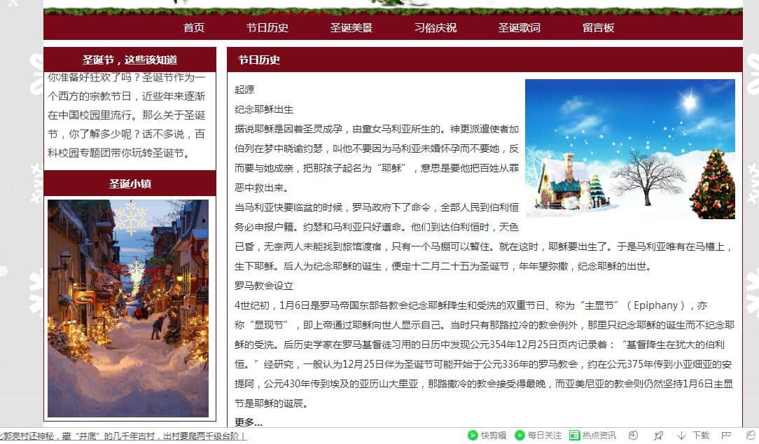 圣诞节网页,带制作步骤,网页采用table布局是,使用|Dreamweaver软件制作,适合初学者学习,网页中引入了背景音乐。 |