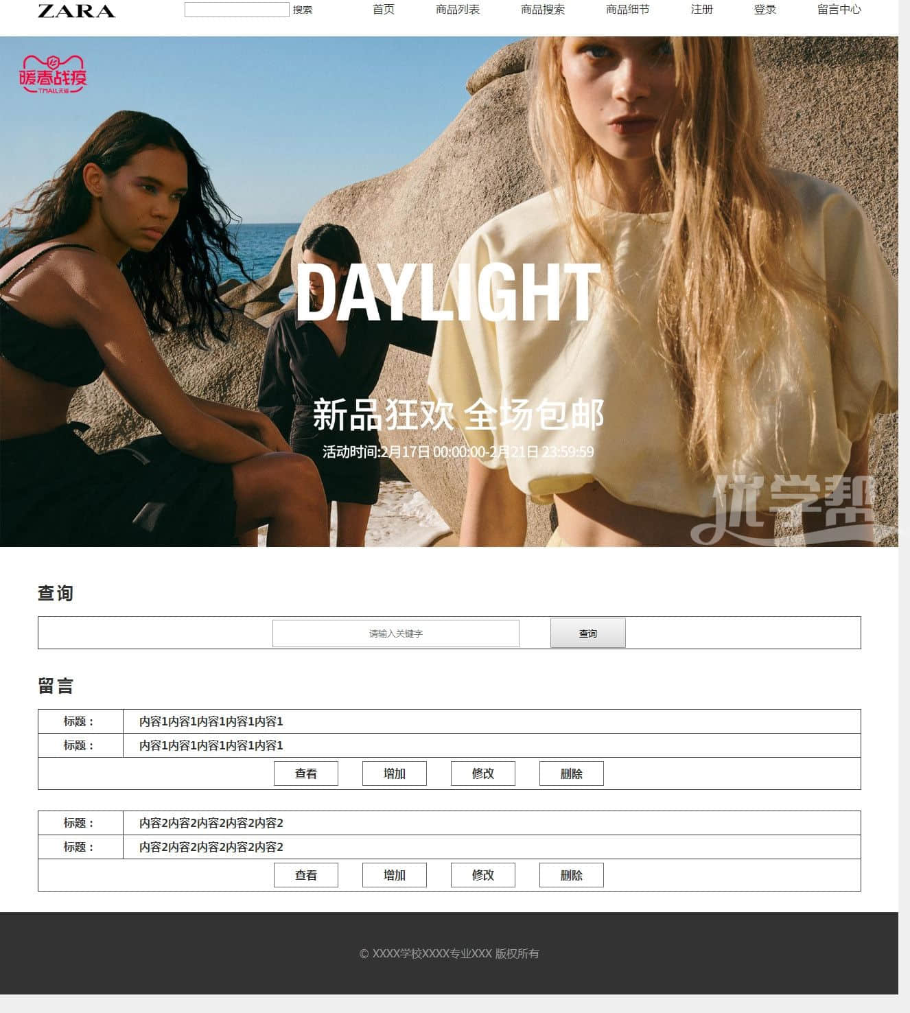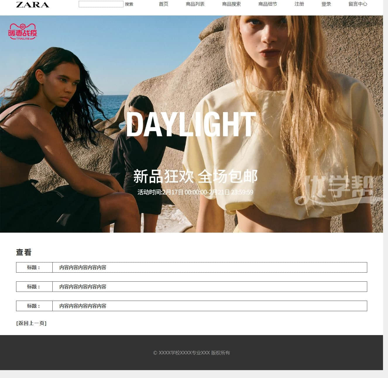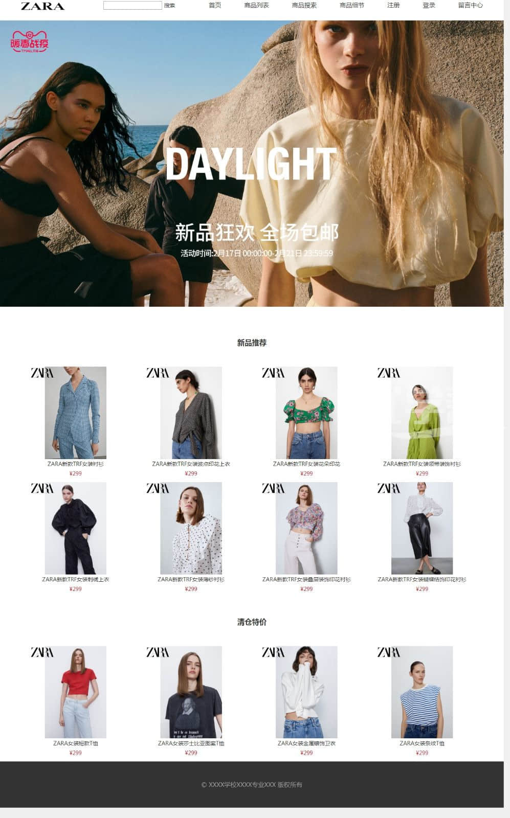 ZARA服装商城div+Css布局,页面优美,一共11页。此外还有一个asp+access动态网页的版本。 |
