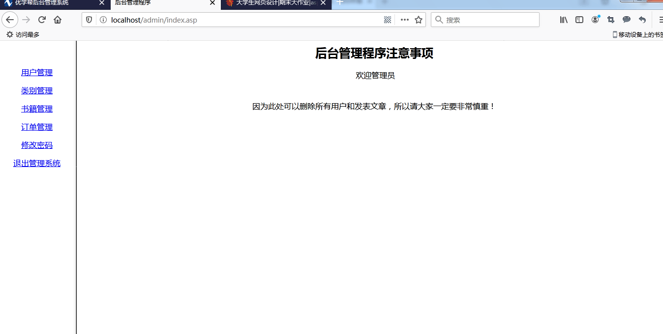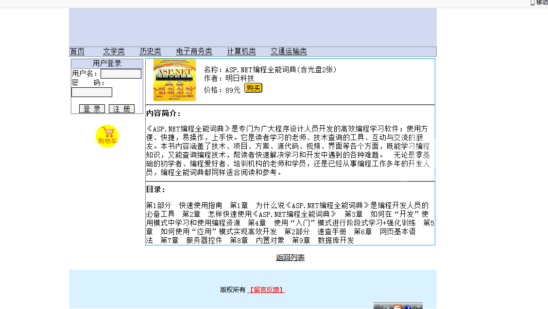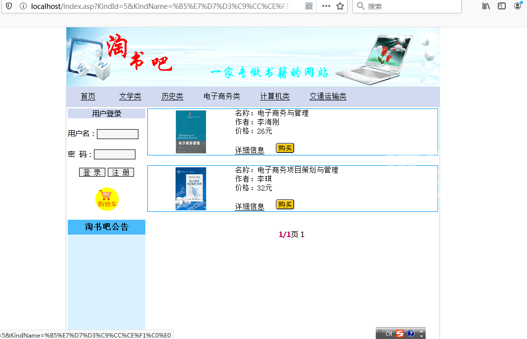 图书网上商城,主要功能是 登陆注册 留言 后台管理 订单管理 书籍管理 用户管理。前台下单 个人中心 修改资料等等。带报告版本多加20元,数据库是access 后台语言是asp |