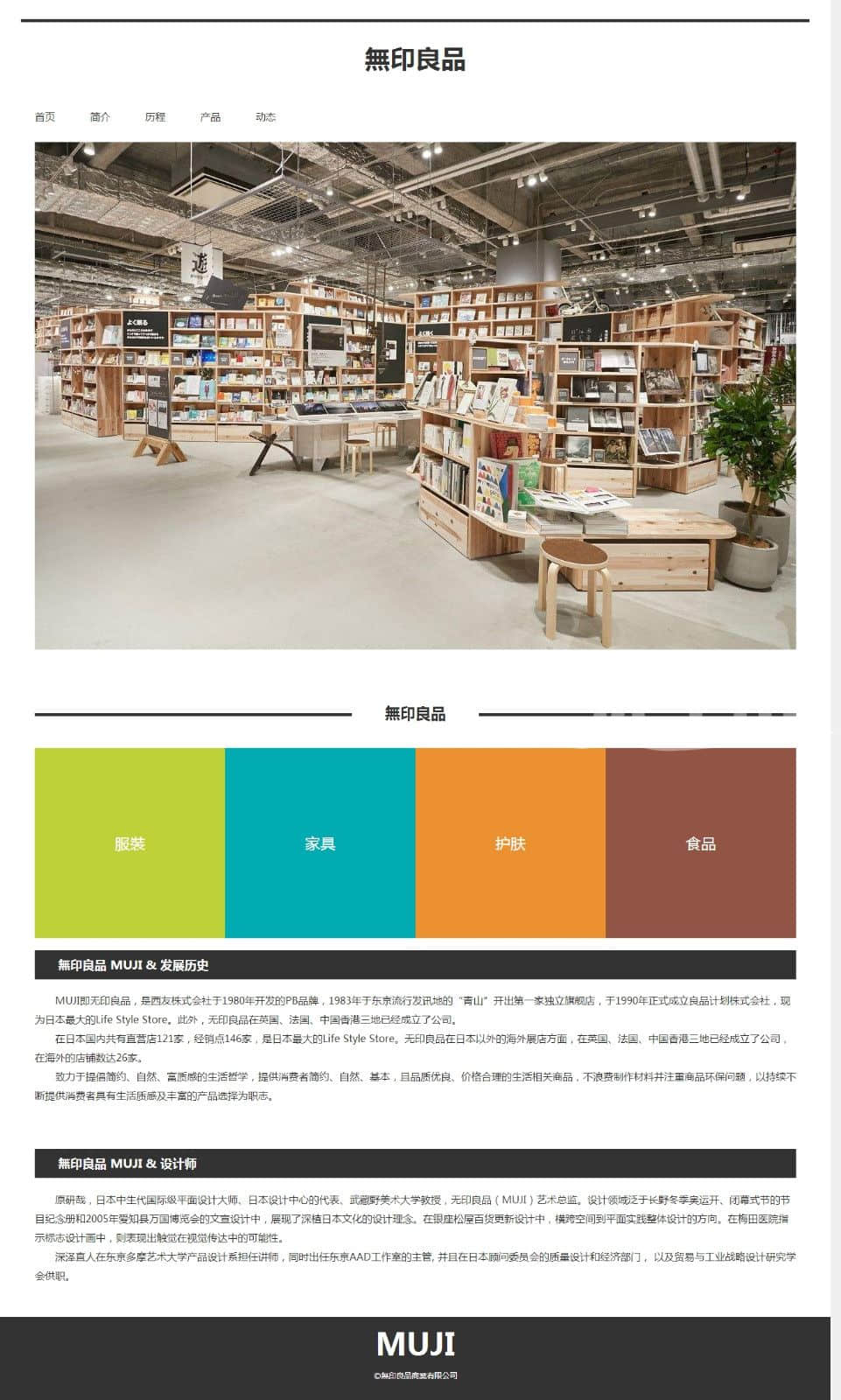 无印良品网站5页,使用dw制作 ,此版本还有12页版本的。需要的可咨询客服 售价90元 |