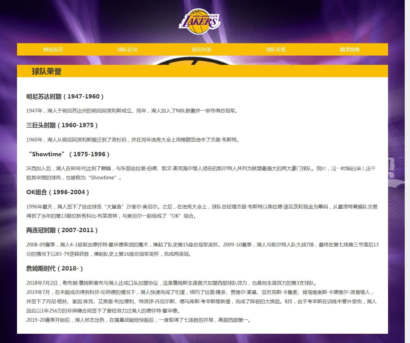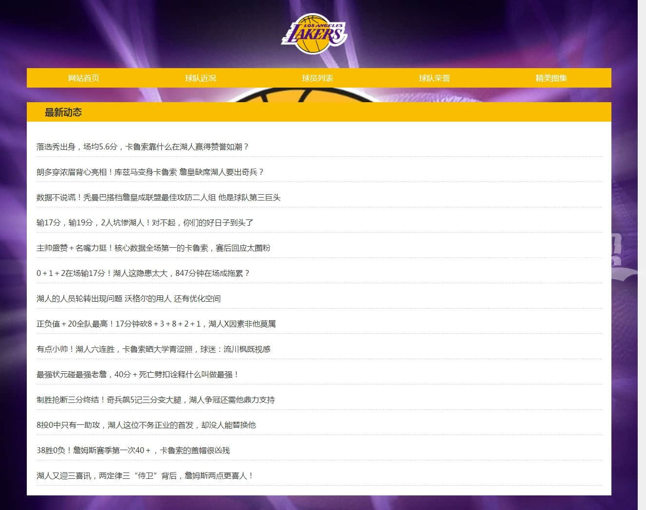湖人队5页。使用dw软件制作,div+css布局 ,此版本还有一个13页的静态网页版本,售价80元,具体可咨询客服 |