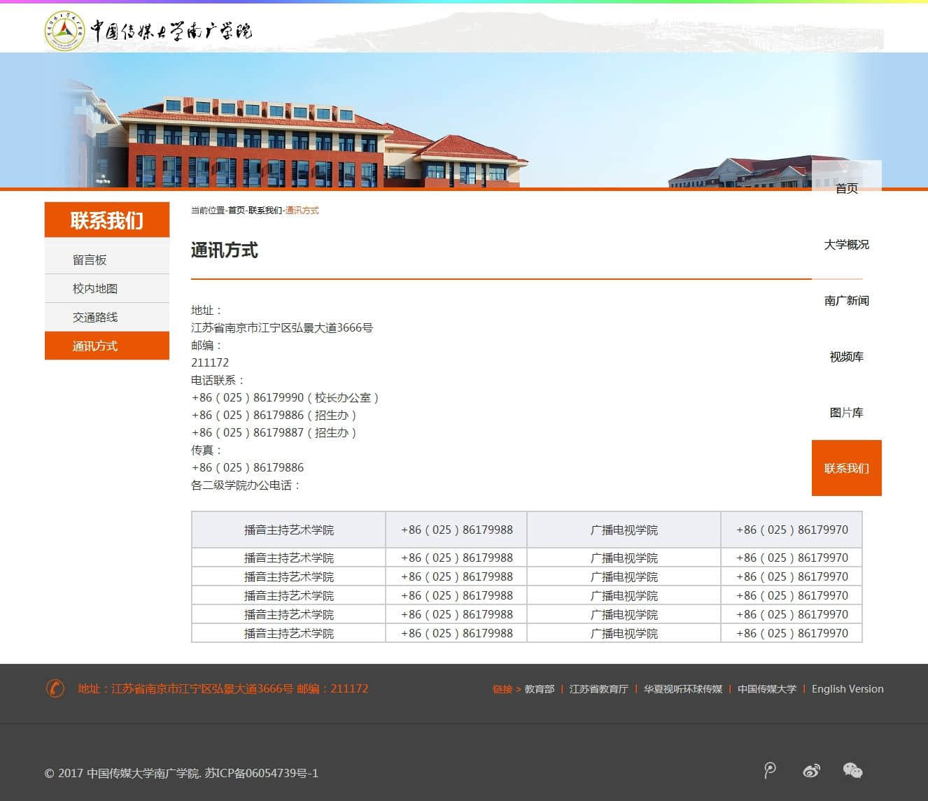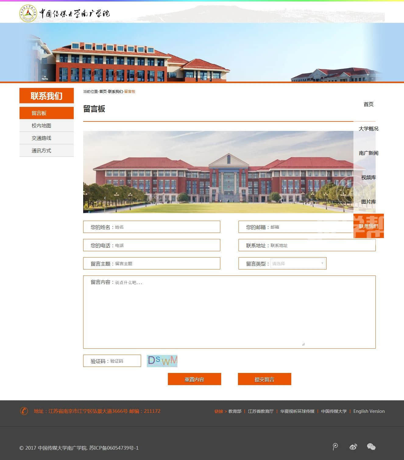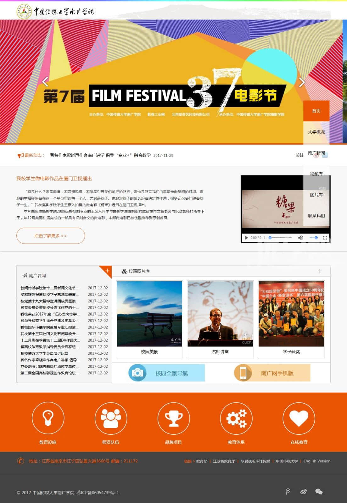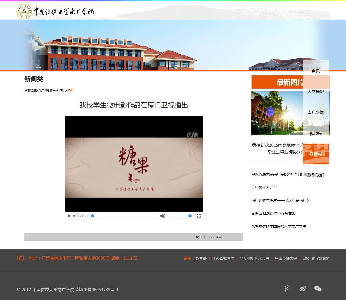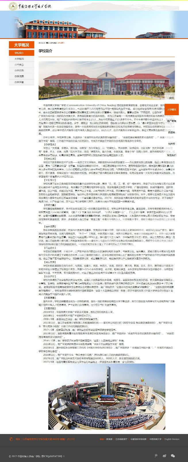 中国传媒大学南广学院,布局简单。div+css布局,适合网页爱好者 |