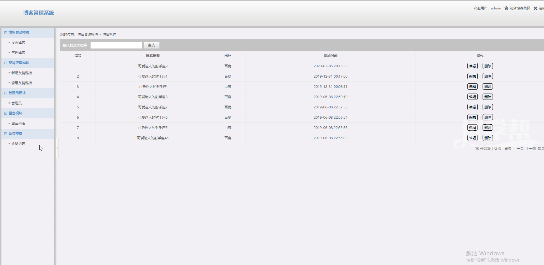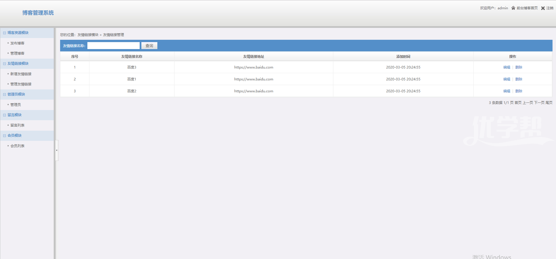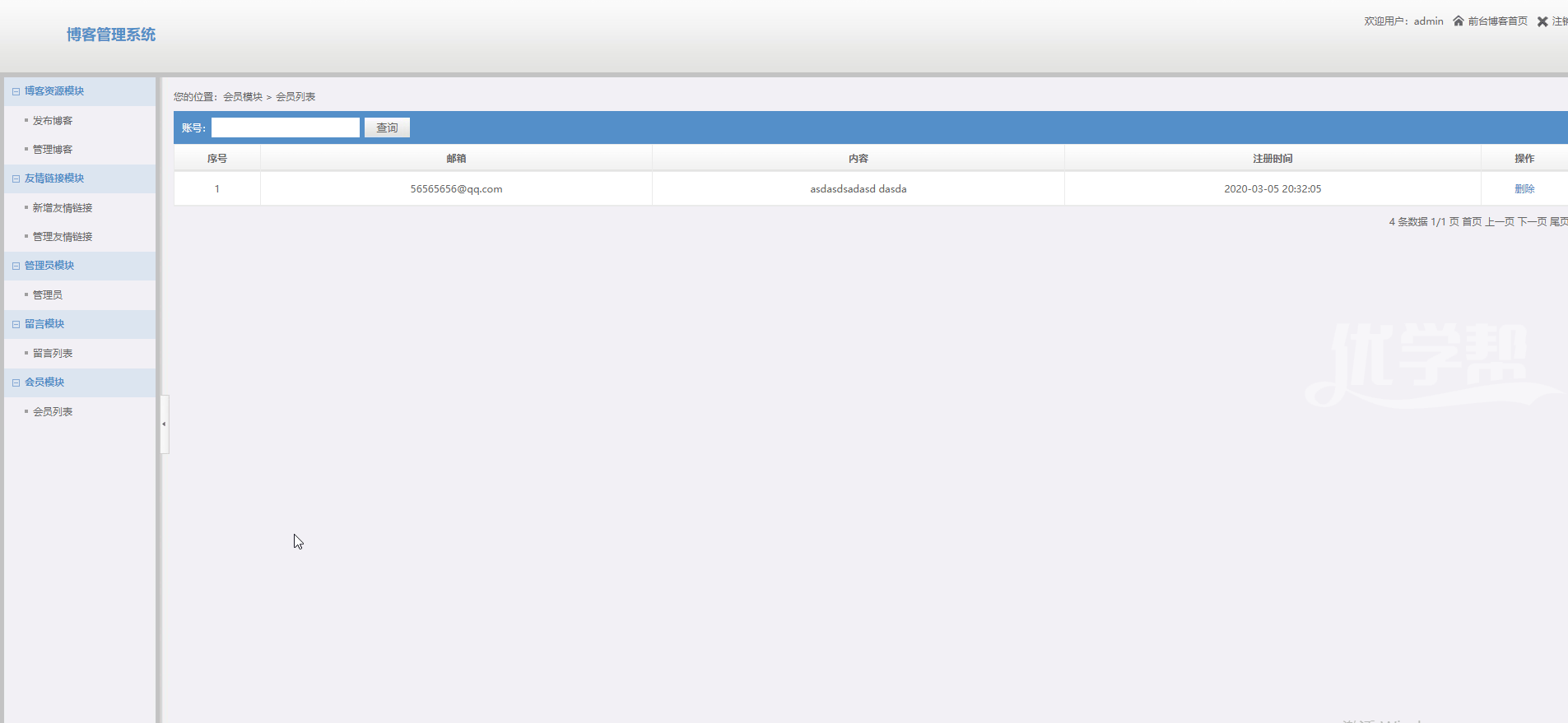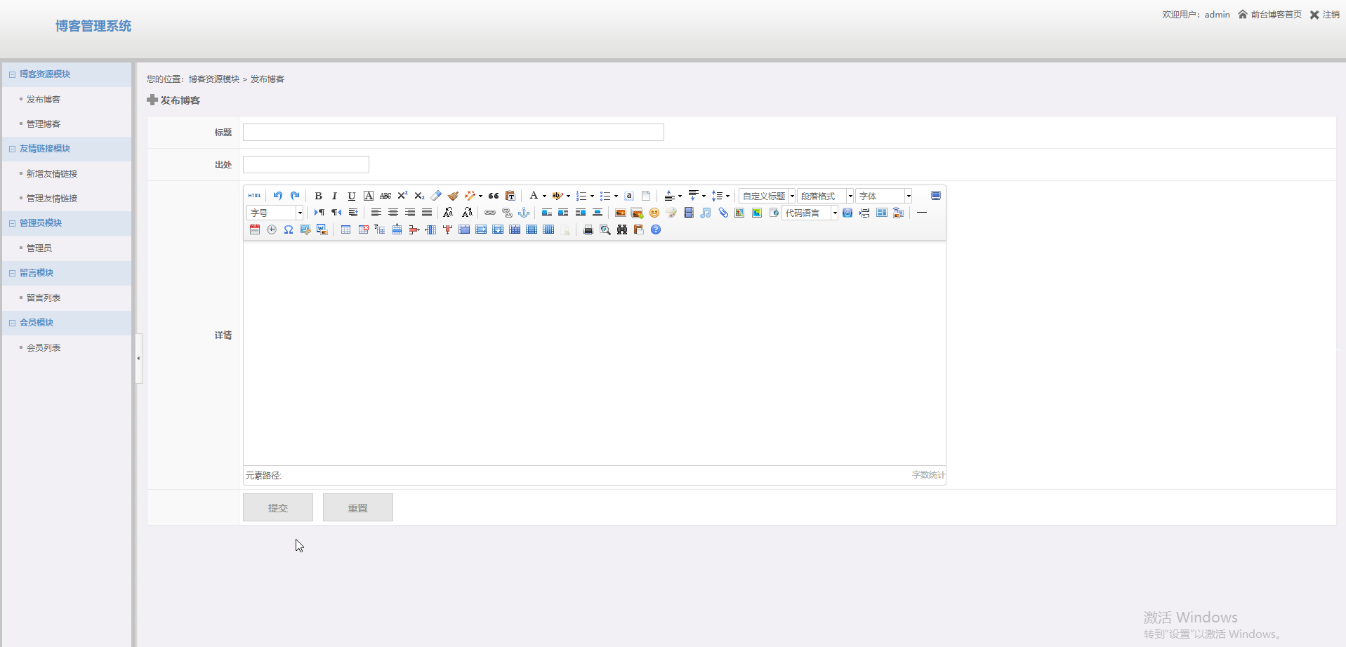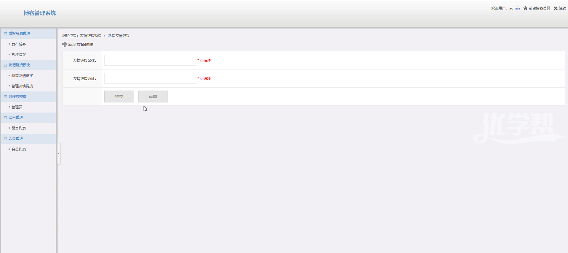 博客网站登录注册留言后台管理,采用php+mysql制作。网站主要功能登录注册留言,后台管理,增删改查,发布文章,增加友情链接, |