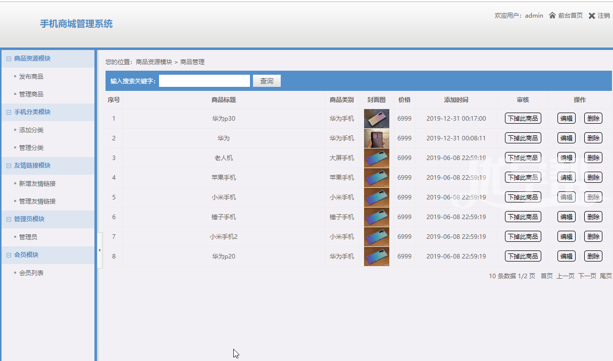 简单手机商城网站登录注册后台管理 11页 php+mysql |