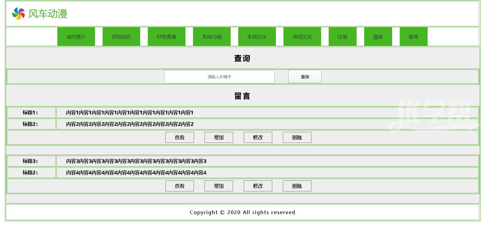 风车动漫登录注册留言 对留言进行修改删除 查询操作。数据库是access 后台语言是asp |