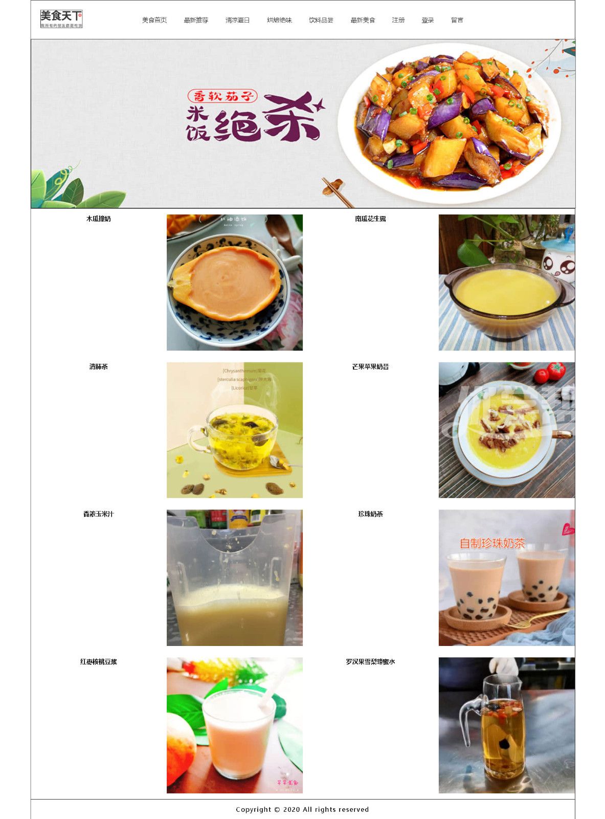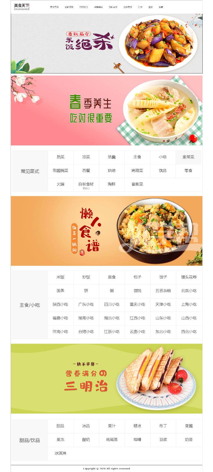 美食天下简单布局网站,DW软件制作 |