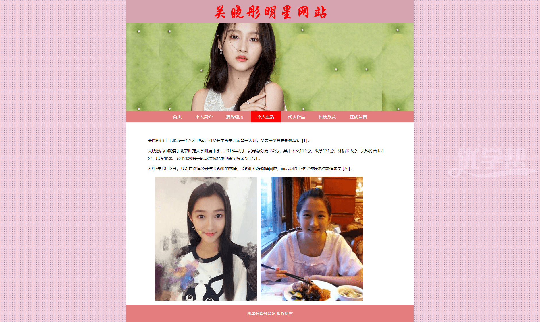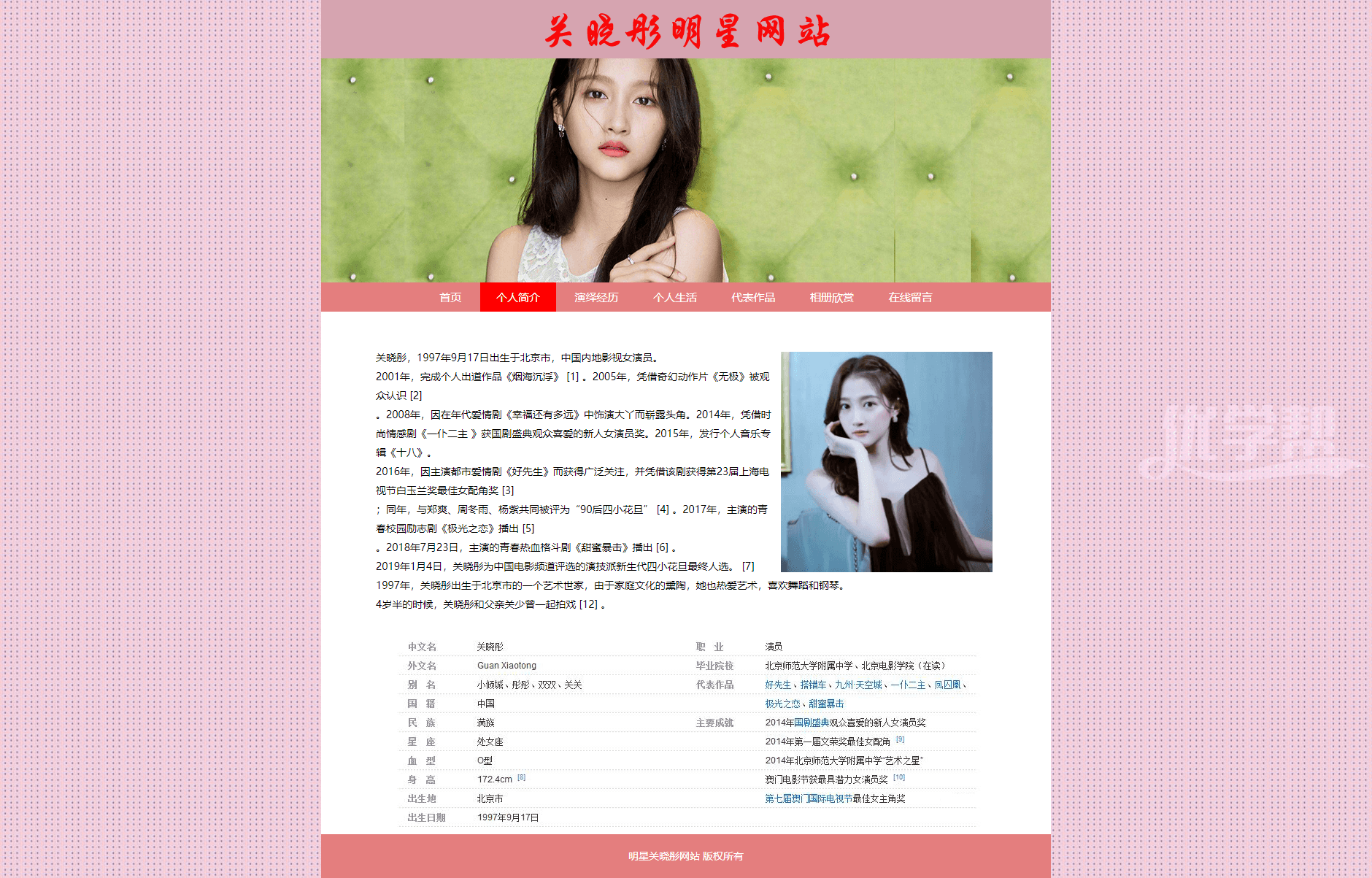 明星关晓彤网站7页 。dw软件制作,简单布局,适合网页爱好者 |