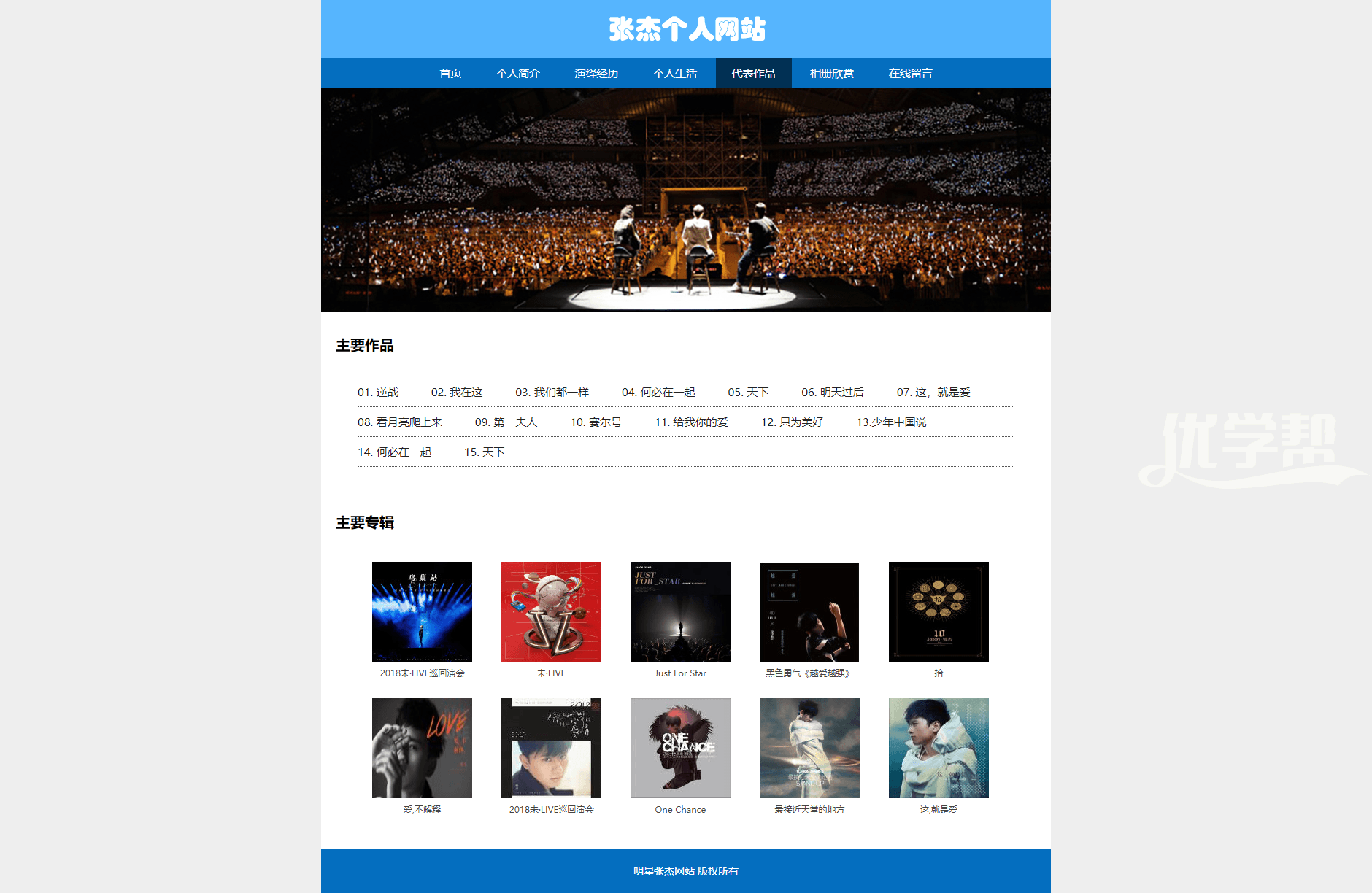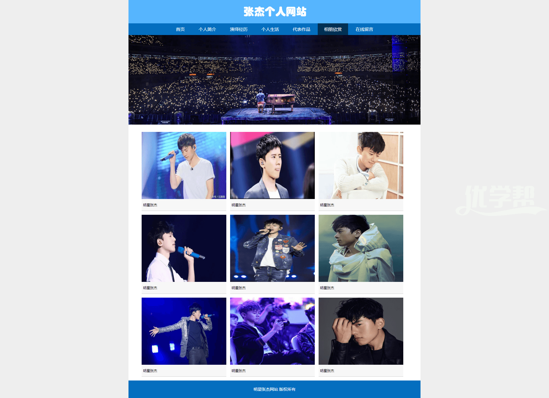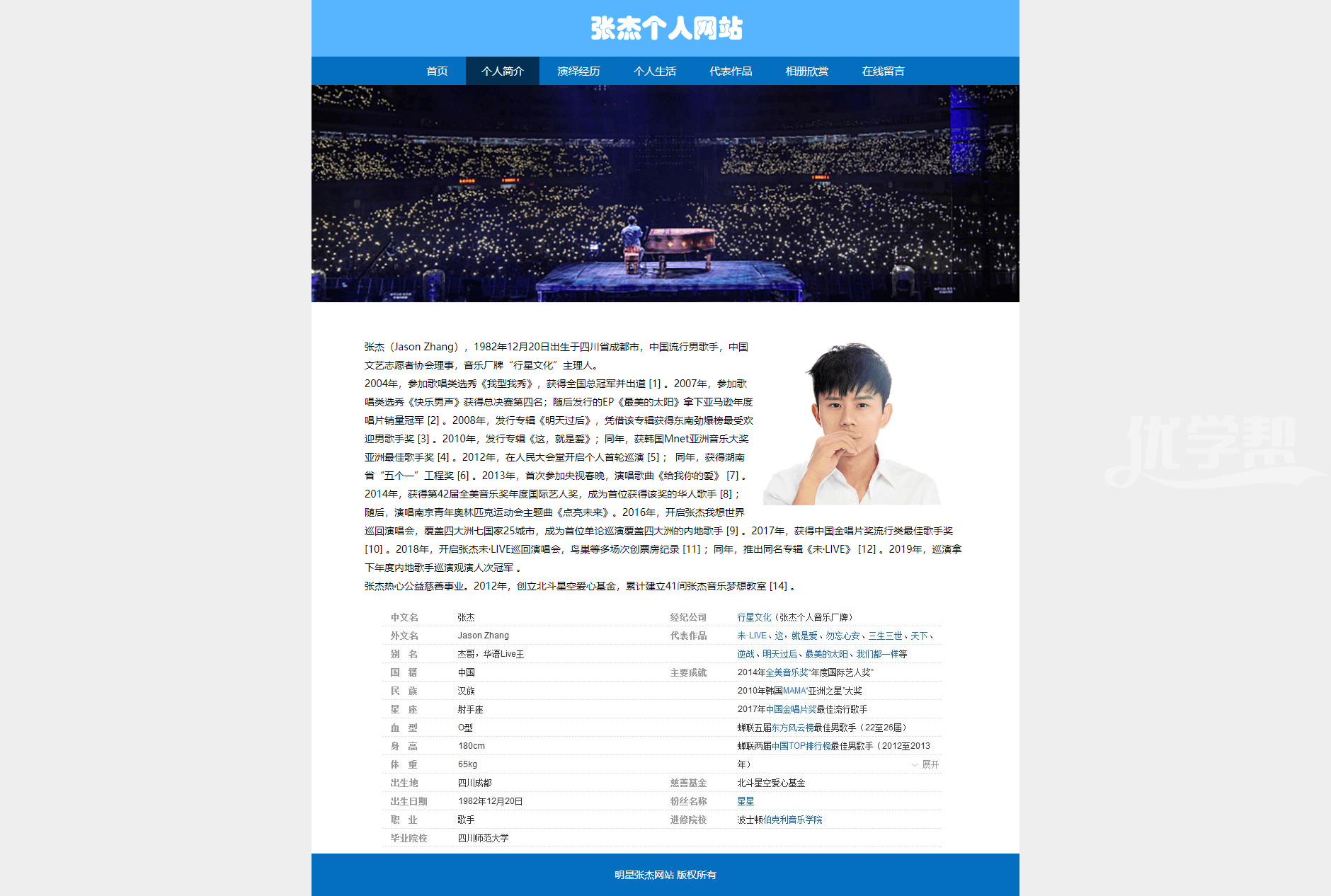 明星张杰网站,布局简单7页,使用dw软件制作 |
