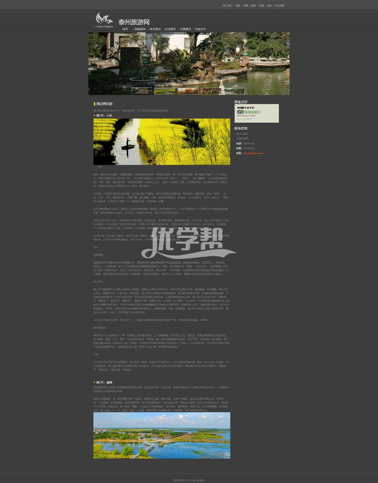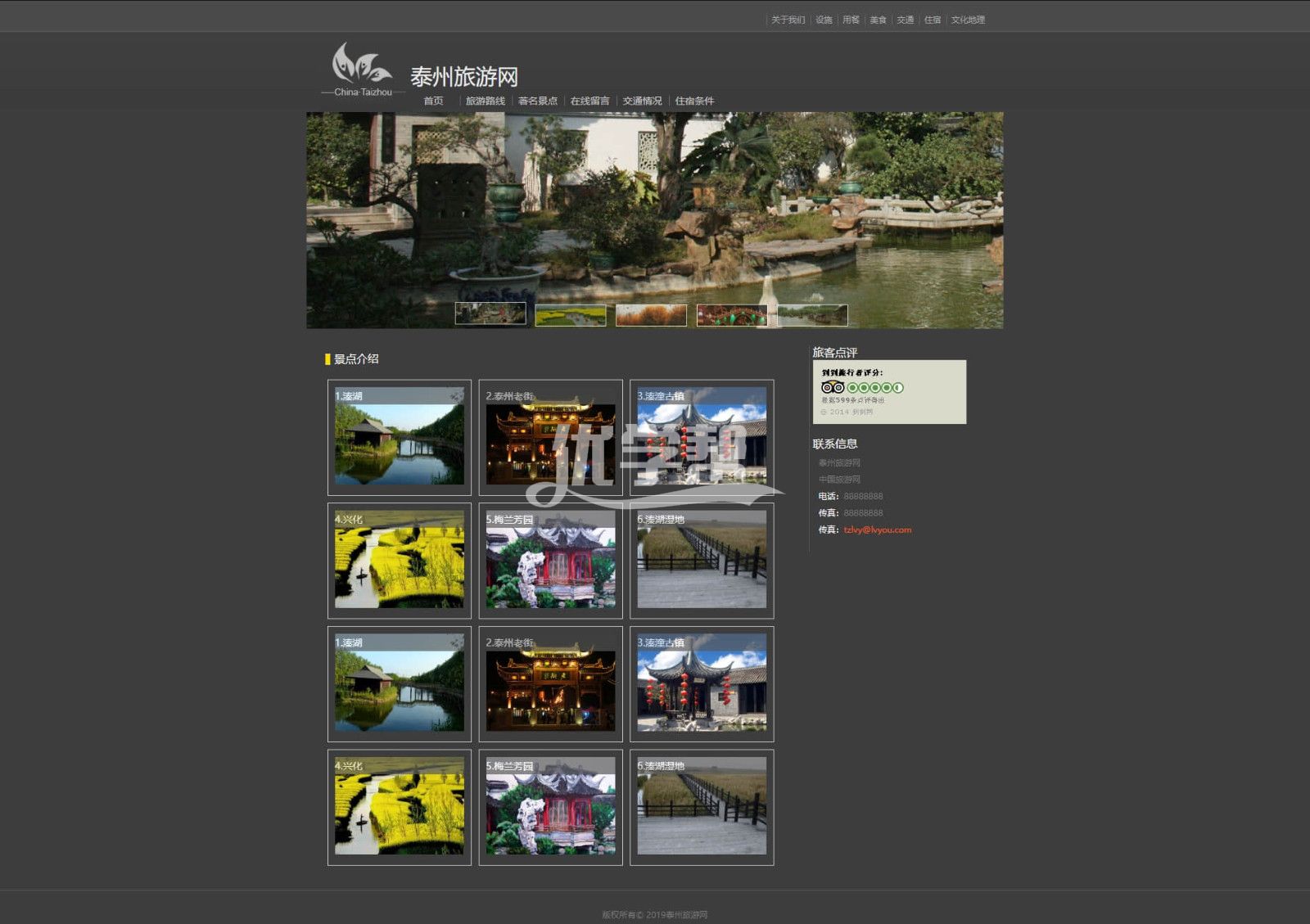 泰州旅游网,HTML作品简单布局 5页,使用dw软件制作。有滚动图片js效果,轮播图片。还有视频播放 |