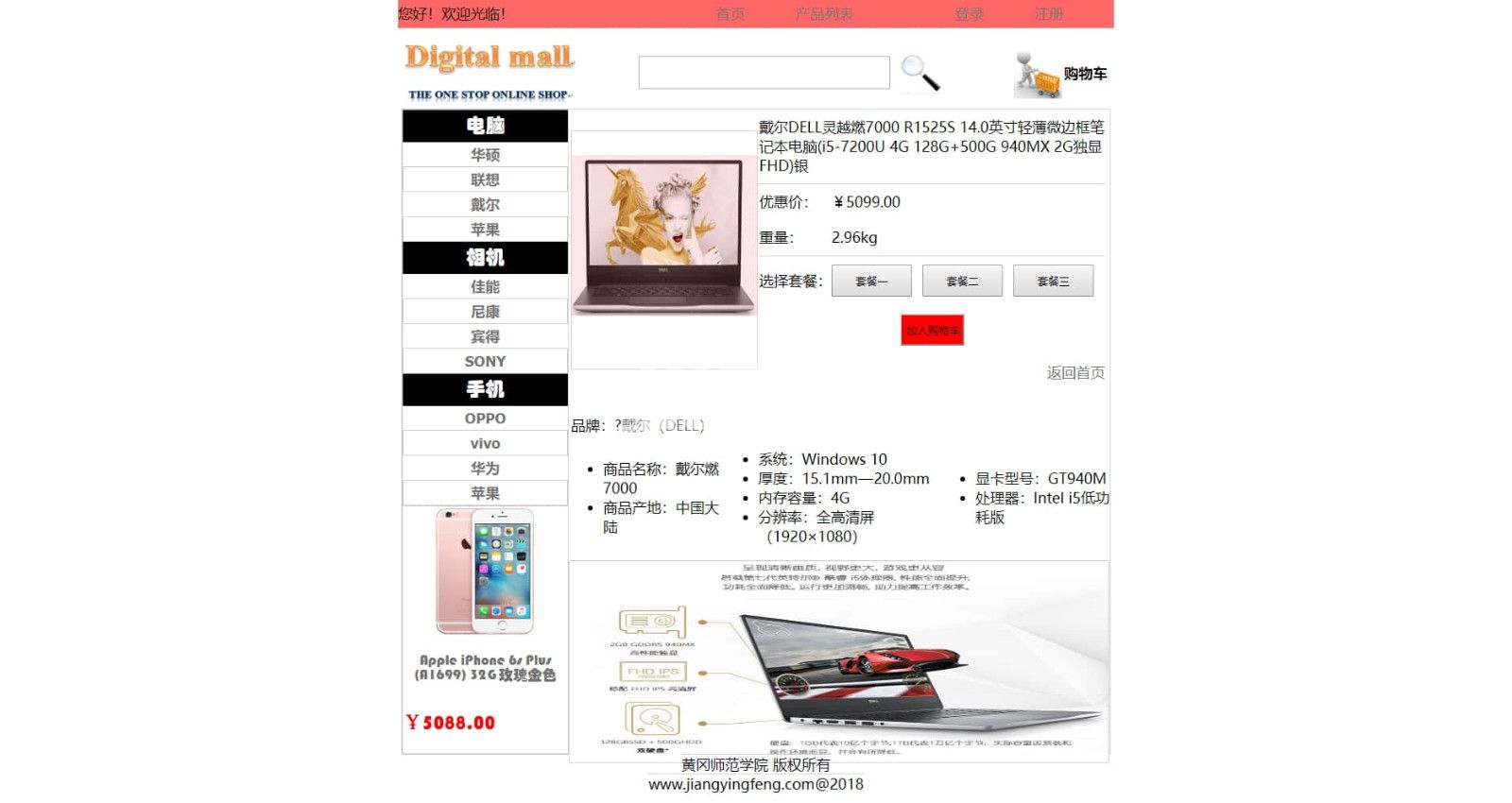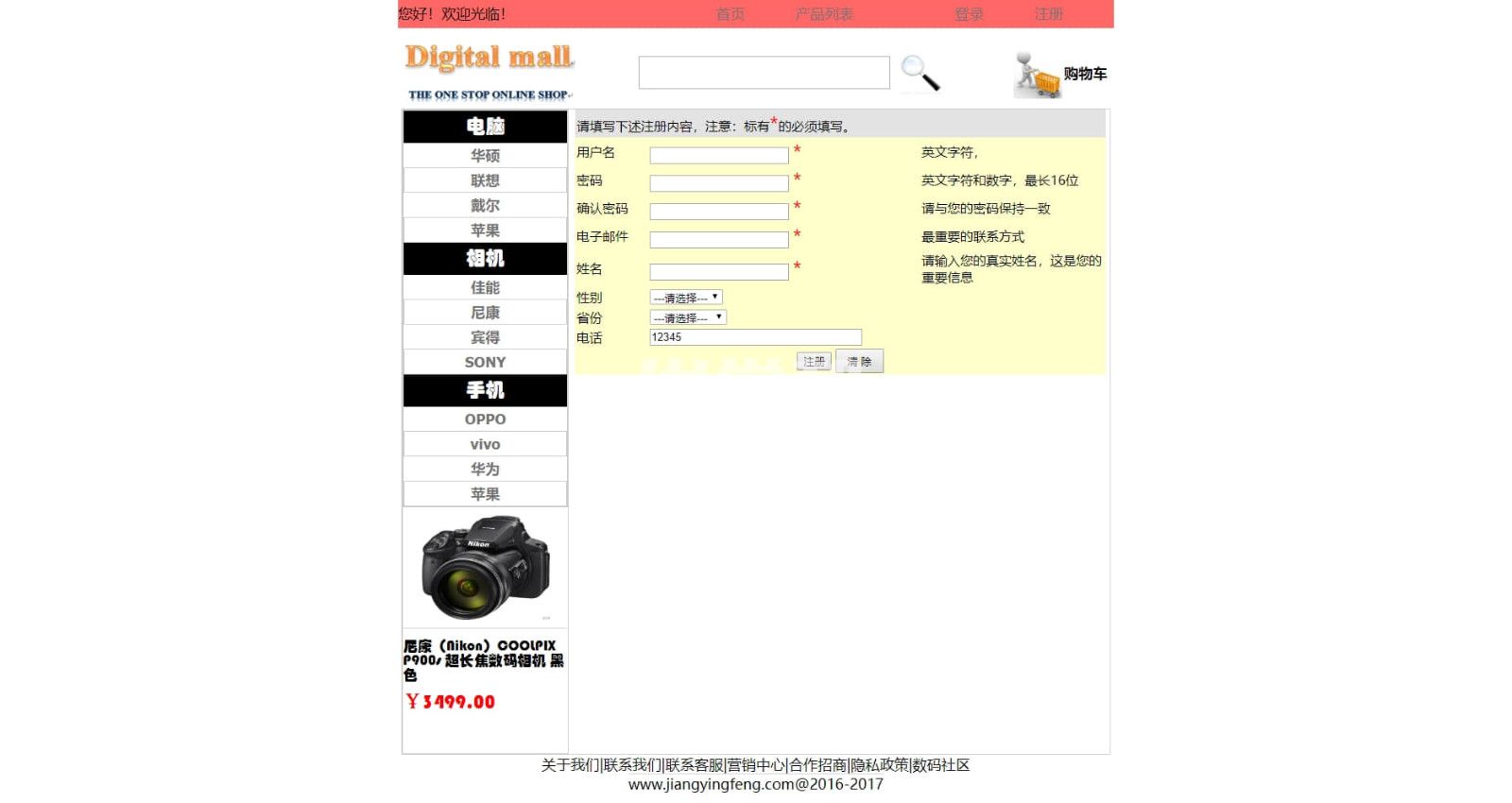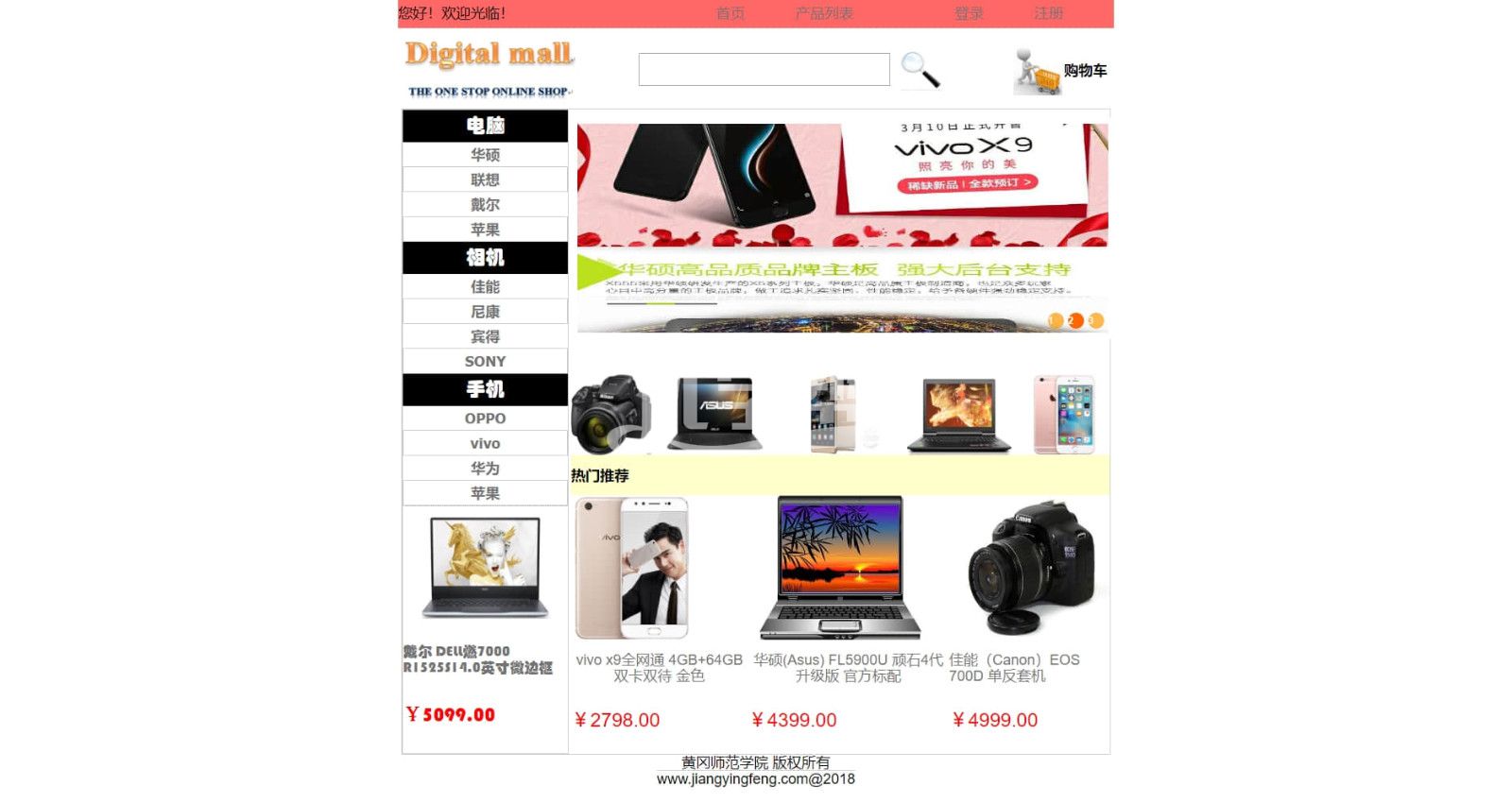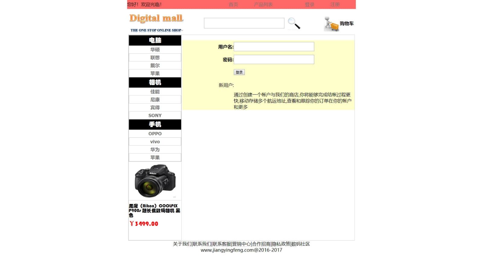电子产品购物网站,登录注册/。数据库是access 后台语言asp。使用dw软件制作。简单布局,适合初学者,网页功能只有登录注册功能。 |