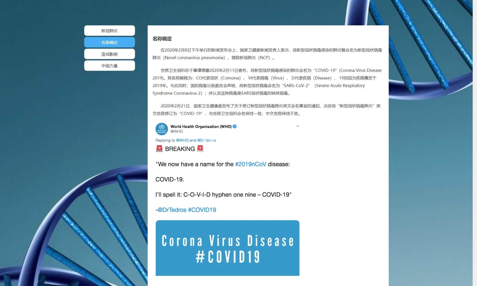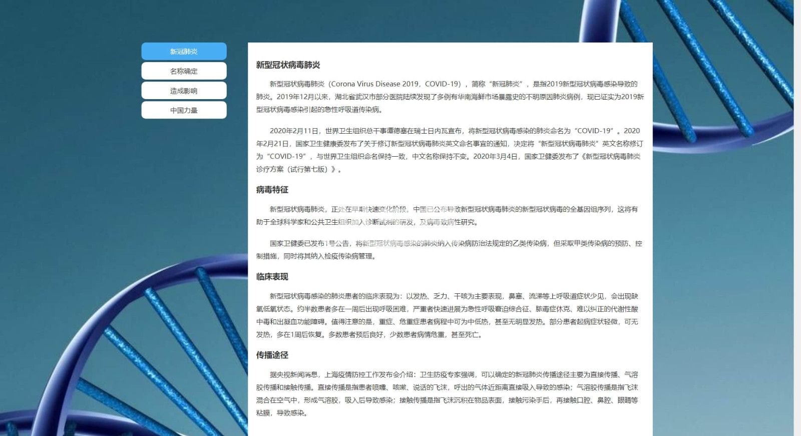 新冠肺炎主题网站4页,简单布局,适合网页初学者。使用dw软件制作 |