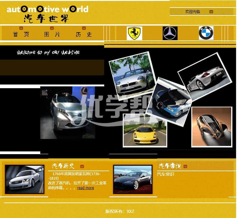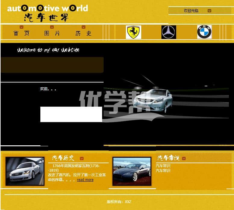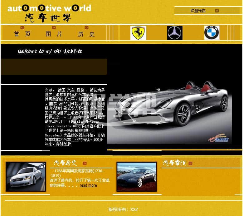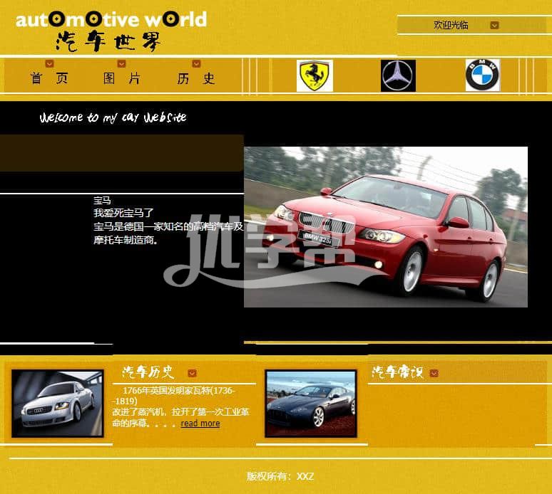 汽车世界主题网页,布局简单。适合初学者。网页文件含文档。简单的文档。可以帮助写设计报告。使用dw软件制作,网页文件见截图 |