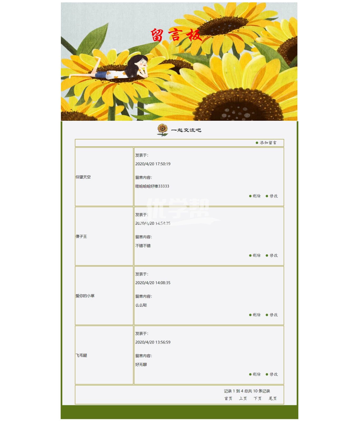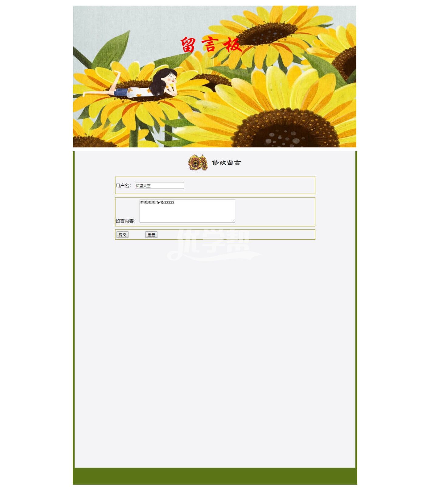 网站留言板,数据库是access 后台语言是asp 。主要功能是添加留言,修改留言。删除留言。网站是动态网站需要配置iis 。同学如果你不会配置,可以寻求帮助。远程配置服务40元。 |