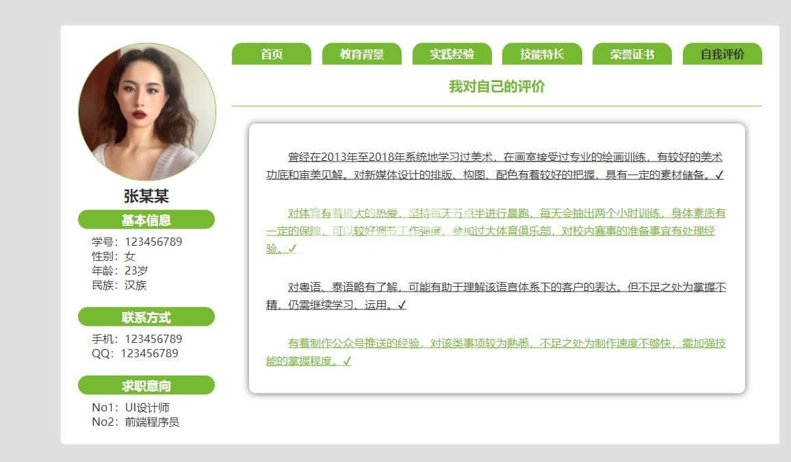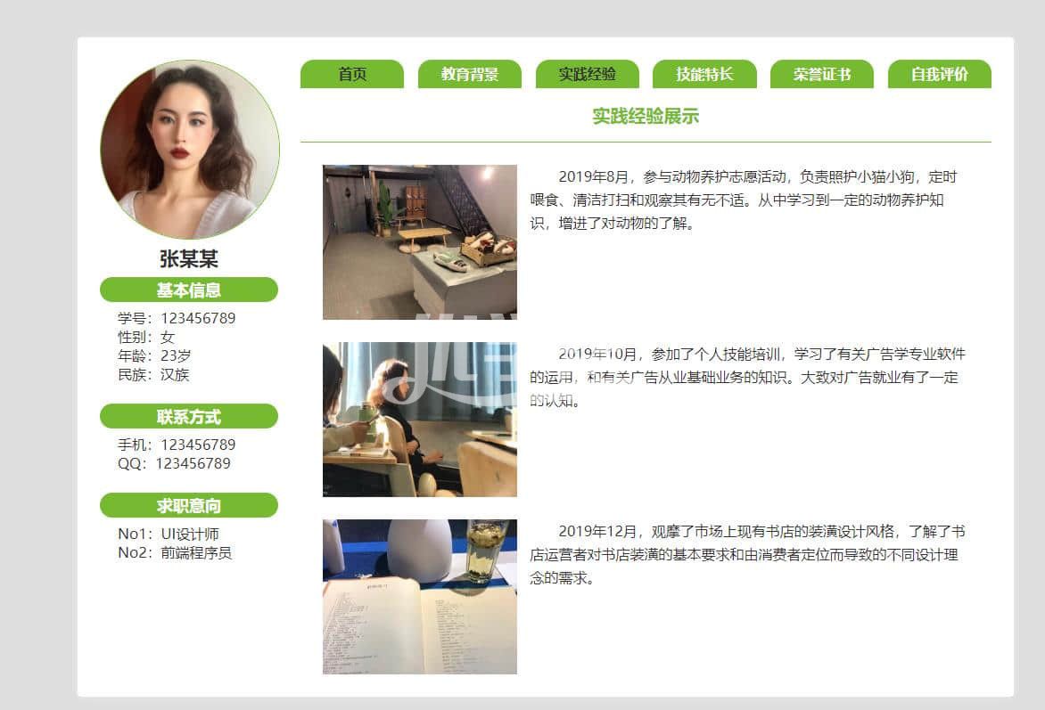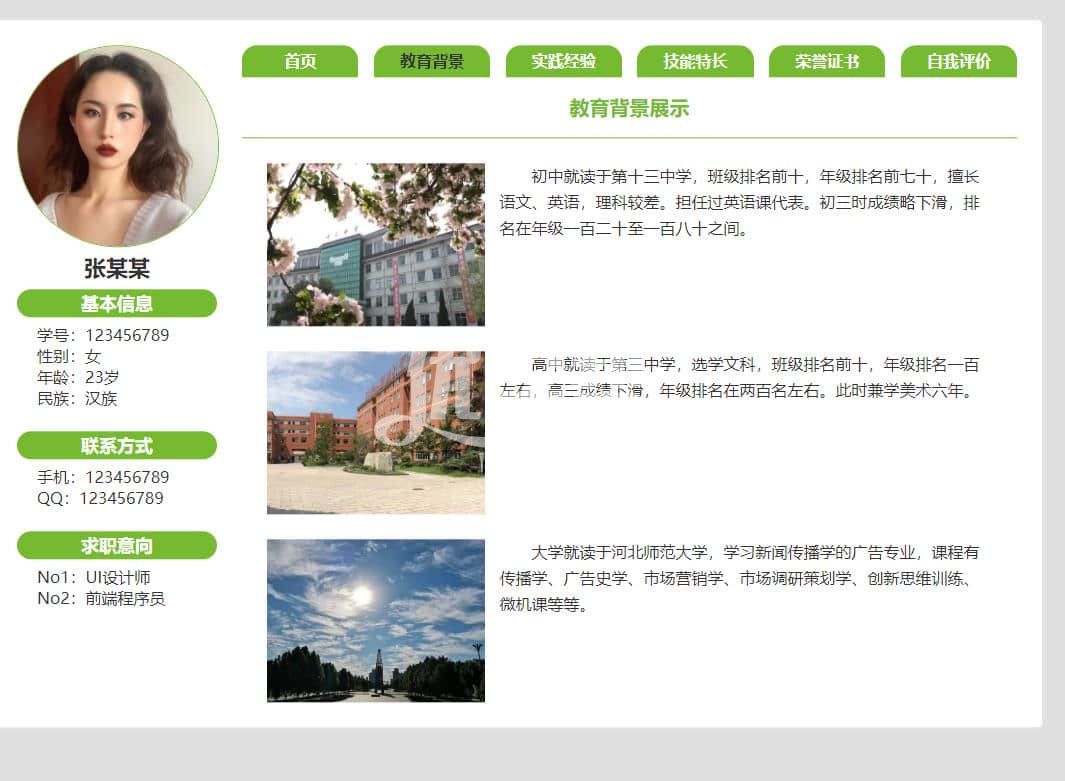 个人简历网站,简单布局 ,div+Css布局 |