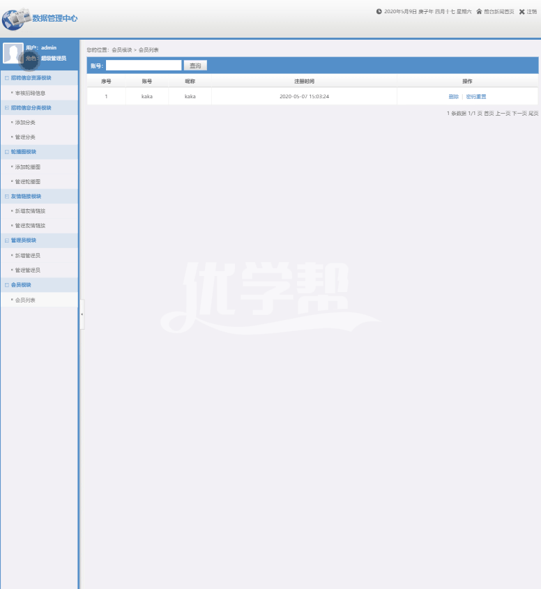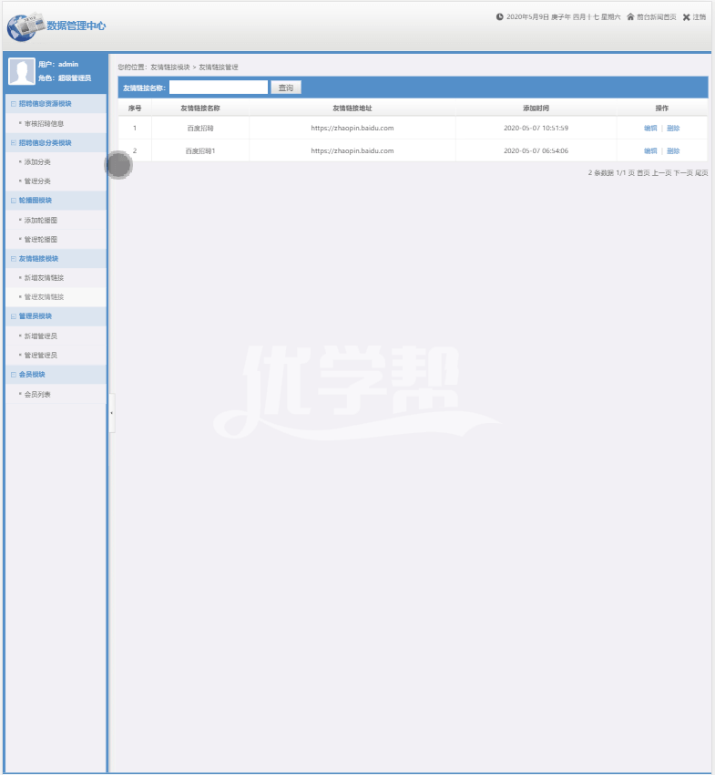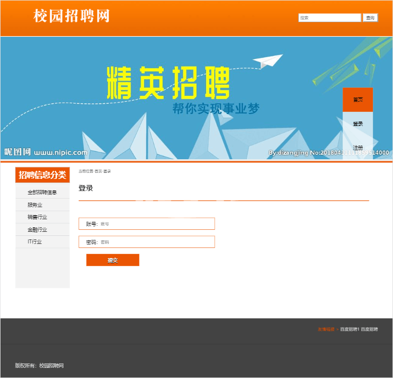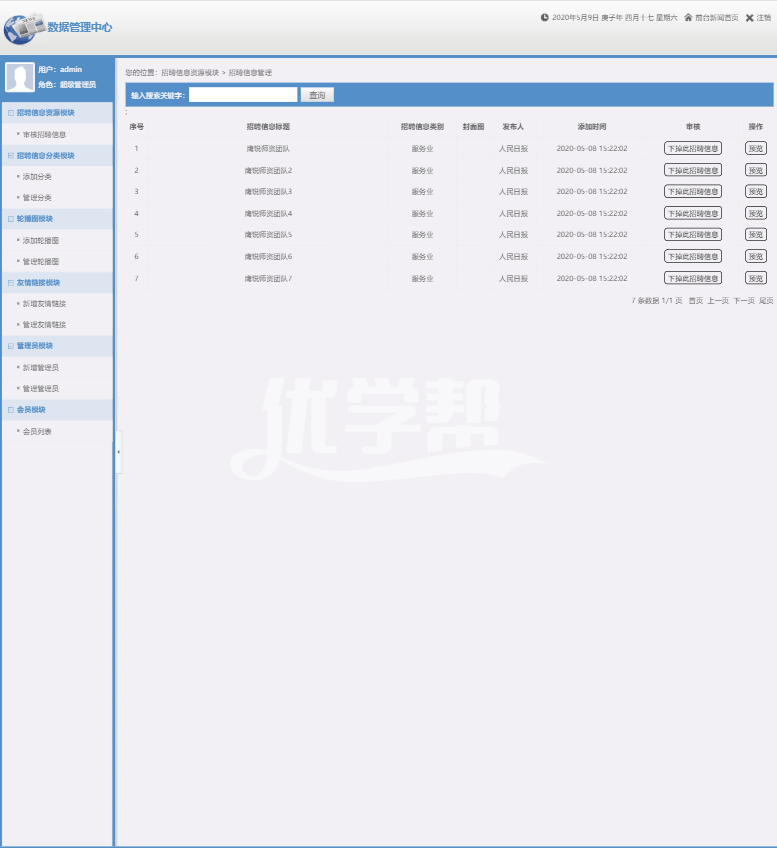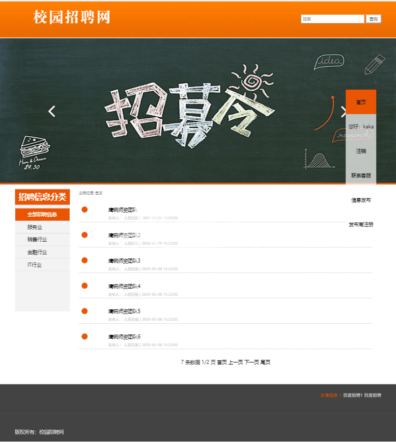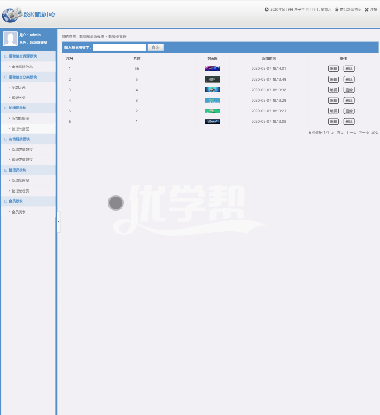 php+mysql 大学生兼职招聘网站学生端:登录注册 求职。商家端:登录注册发布兼职。管理员端管理网站信息:比如:商家会员、普通会员、网站轮播、友情链接管理 |