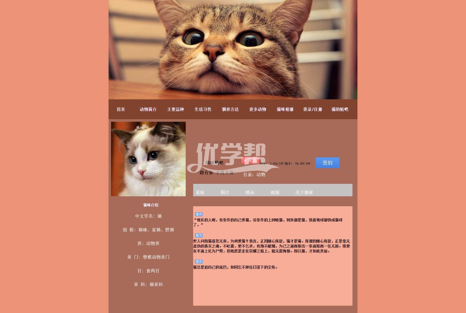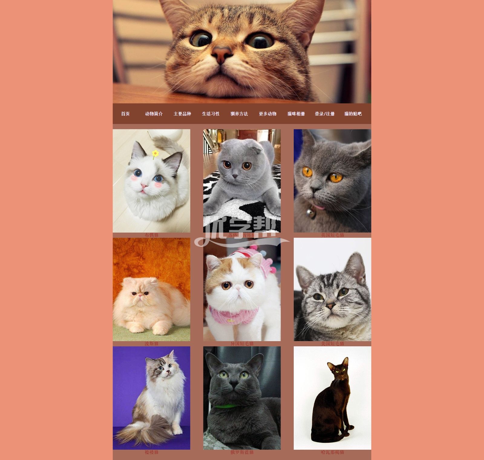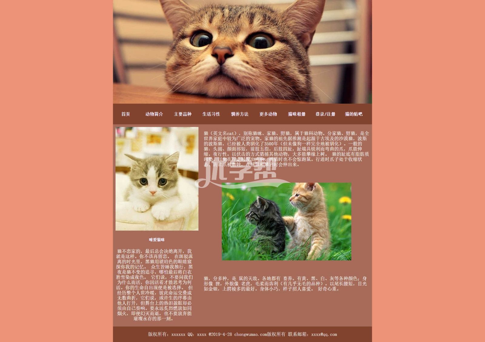宠物猫猫网站 div+Css布局20页 。可以看文件夹截图。使用dw软件制作。适合初学者 |