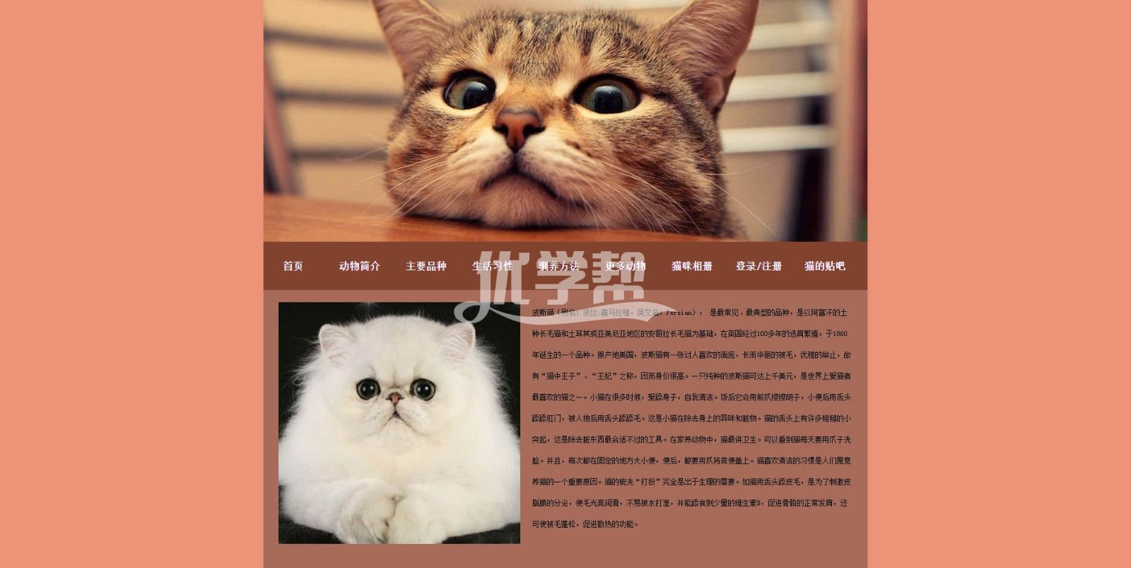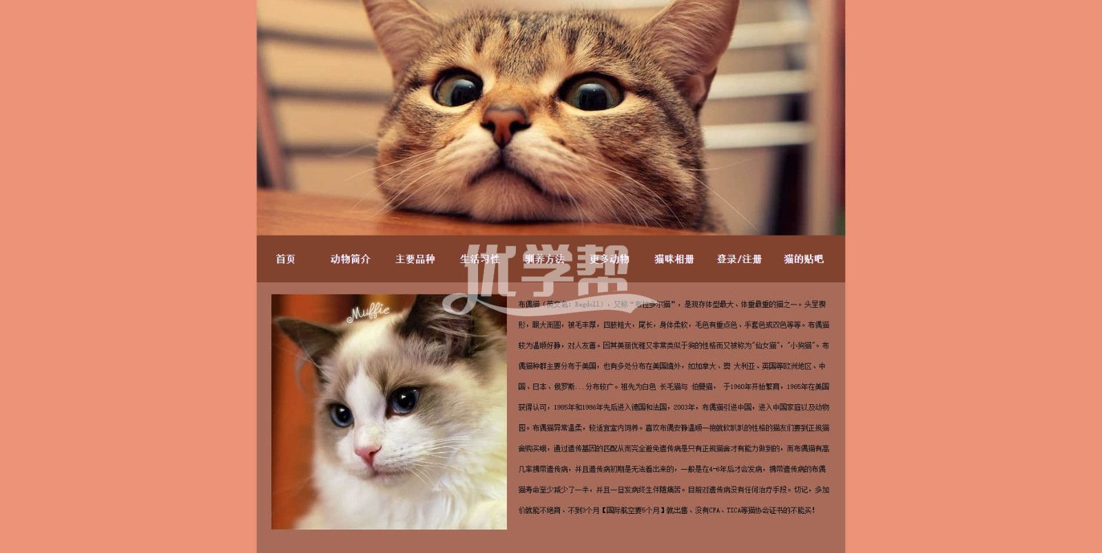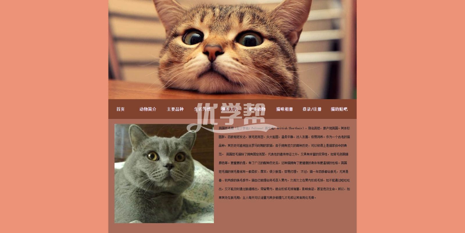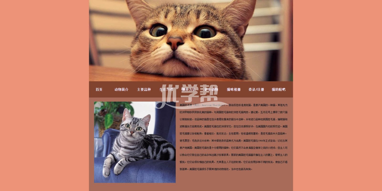 宠物猫猫网站 div+Css布局20页 。可以看文件夹截图。使用dw软件制作。适合初学者 |