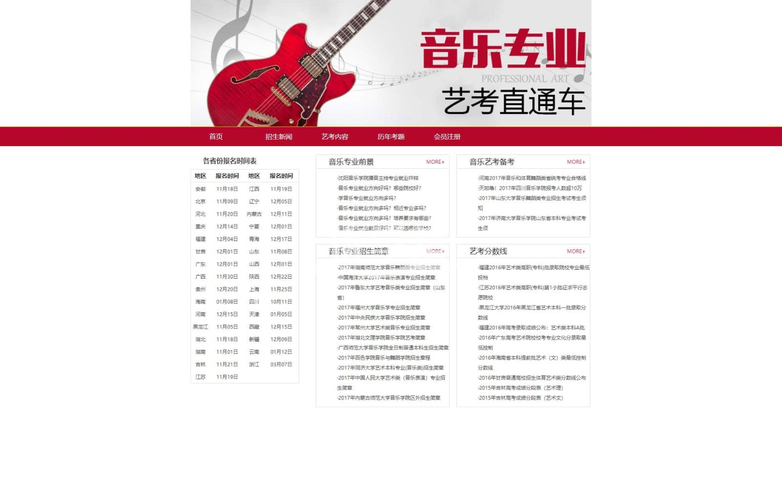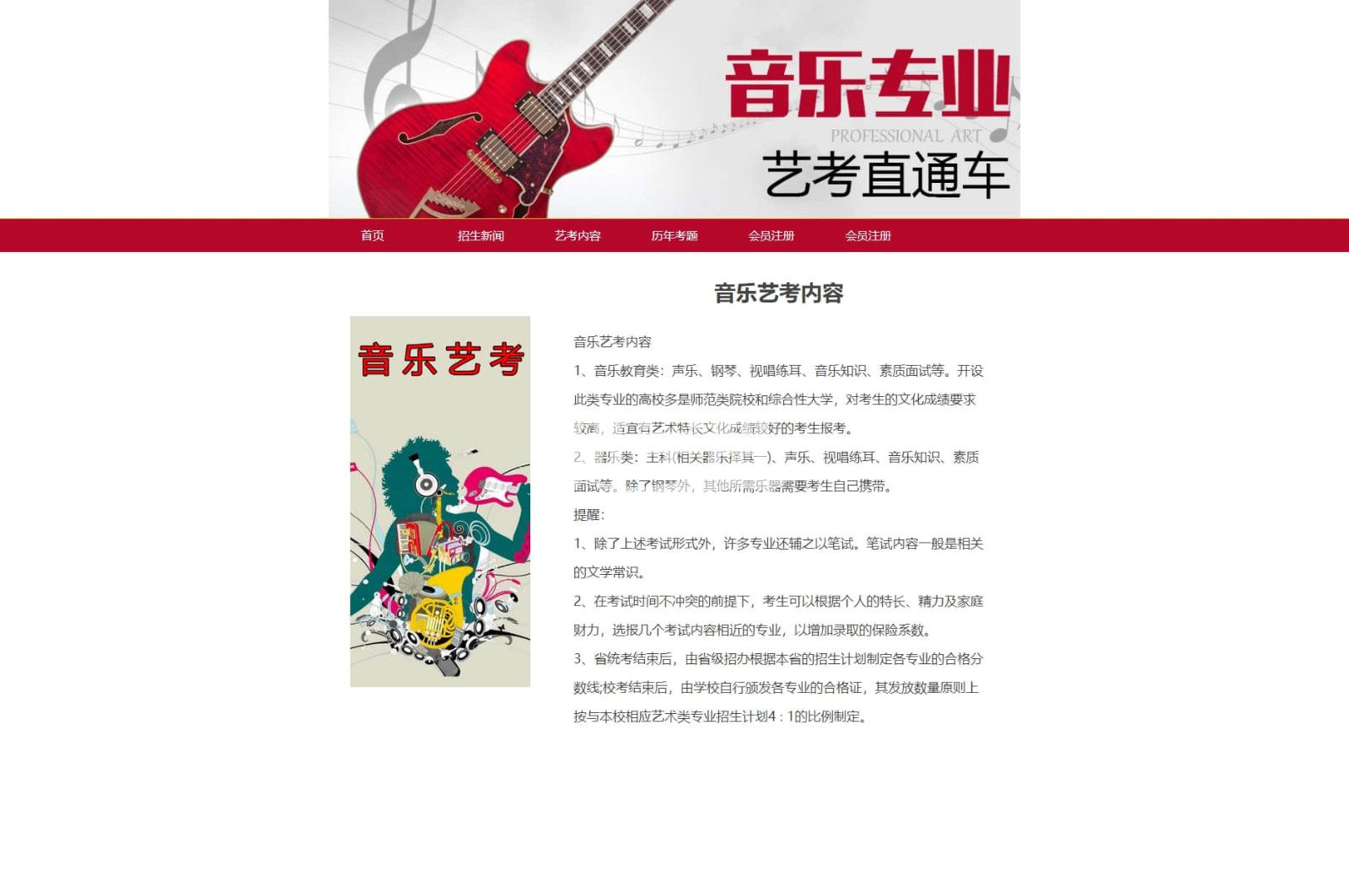 音乐艺考招生网5页,简单布局,使用dw软件制作,适合初学者。div+Css布局 |