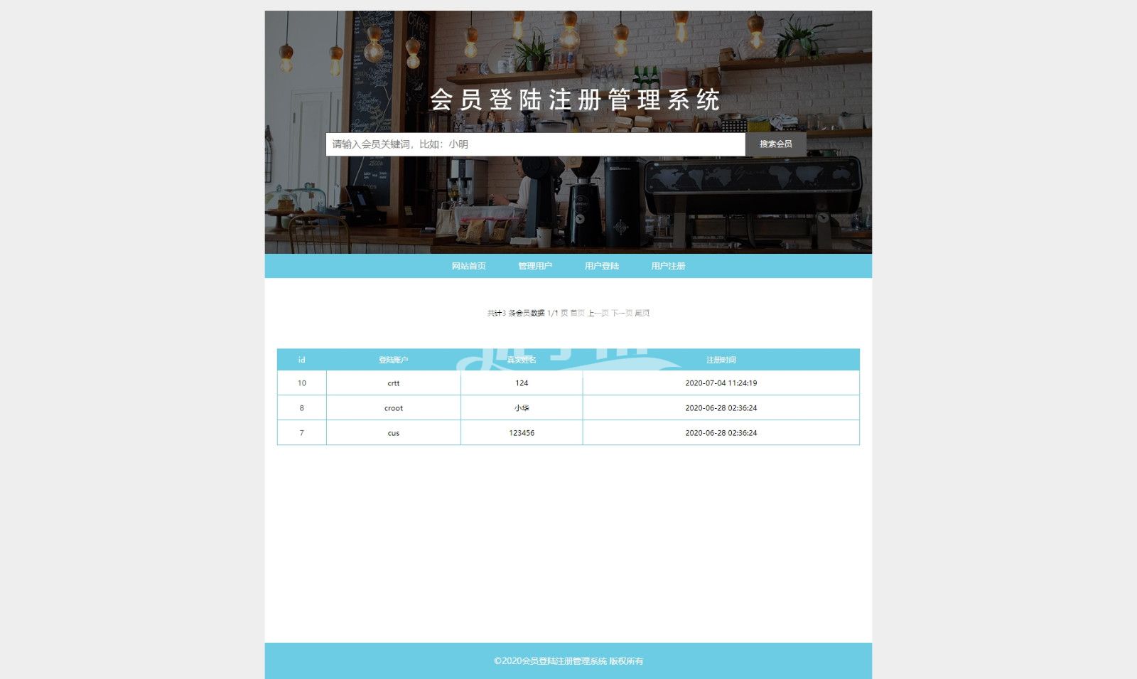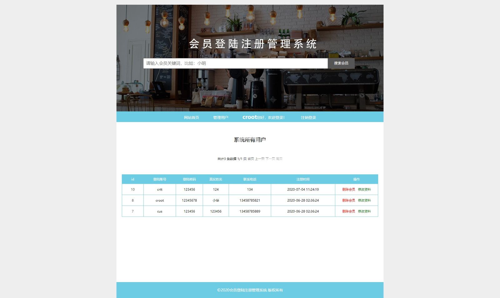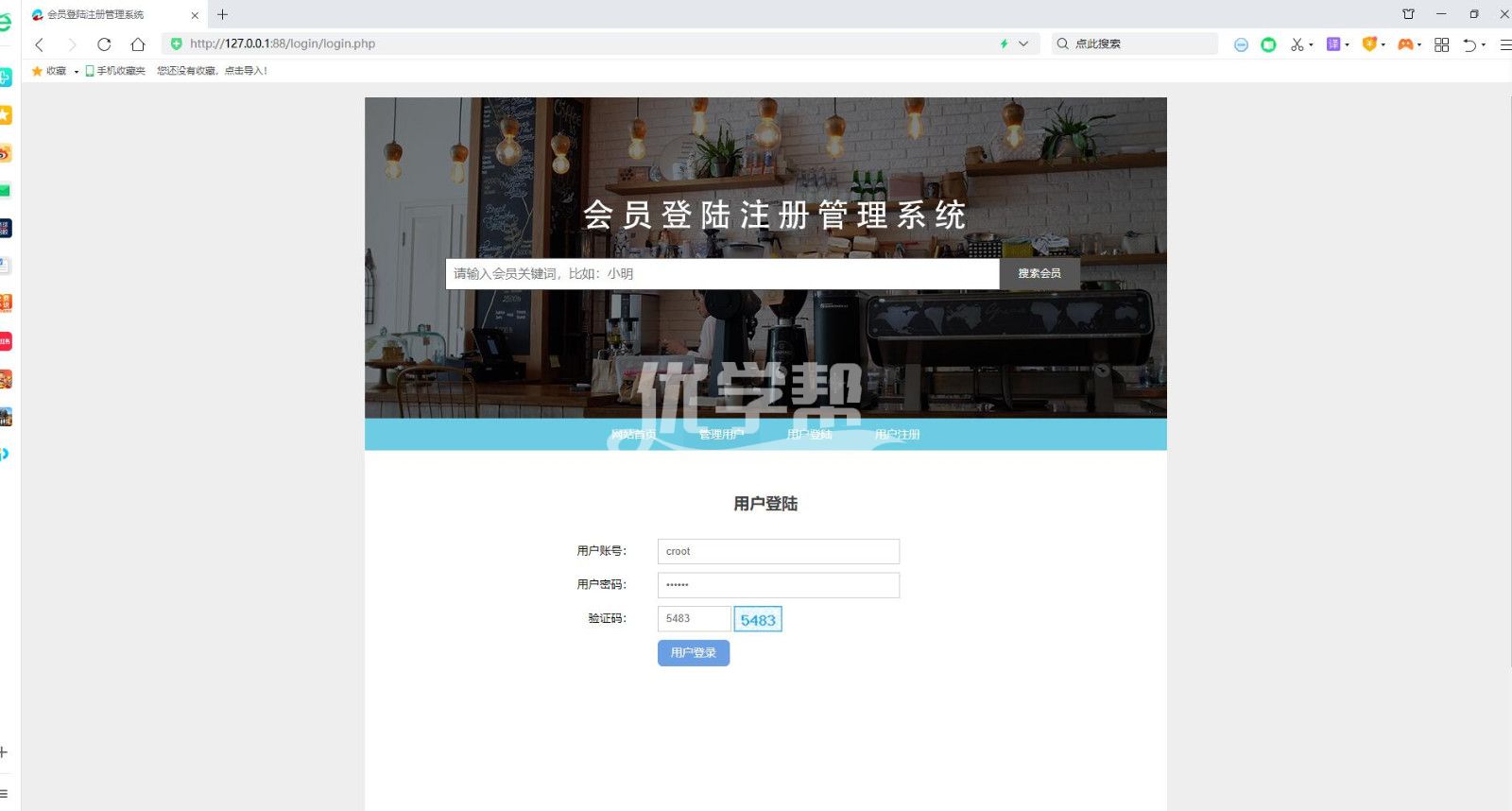 php+mysql会员注册登陆管理系统。登陆会员后可以管理网站注册会员,删除和修改等操作,网站还有查询功能。 |