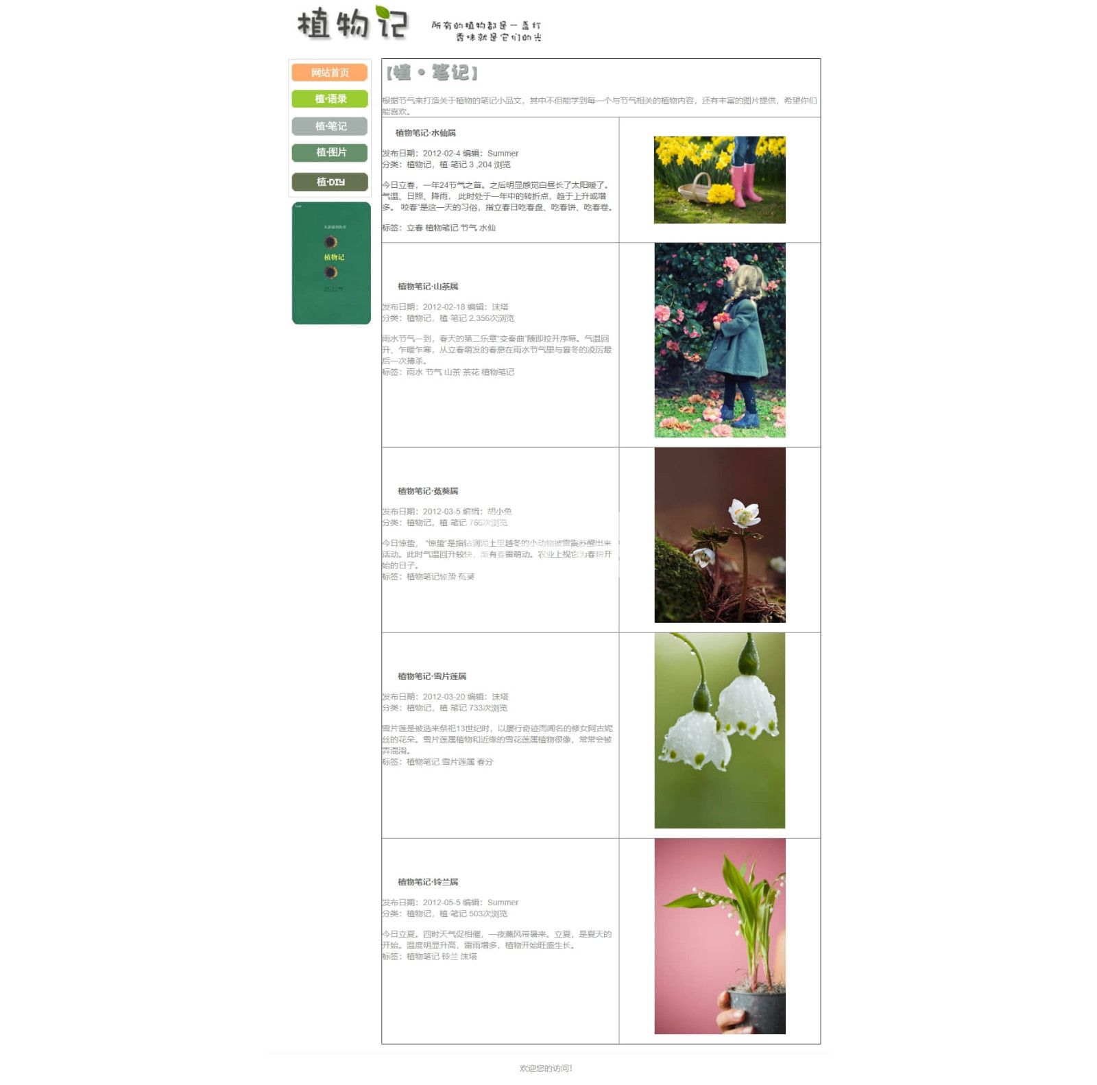 植物记,5页简单布局网站,使用dw软件制作 |