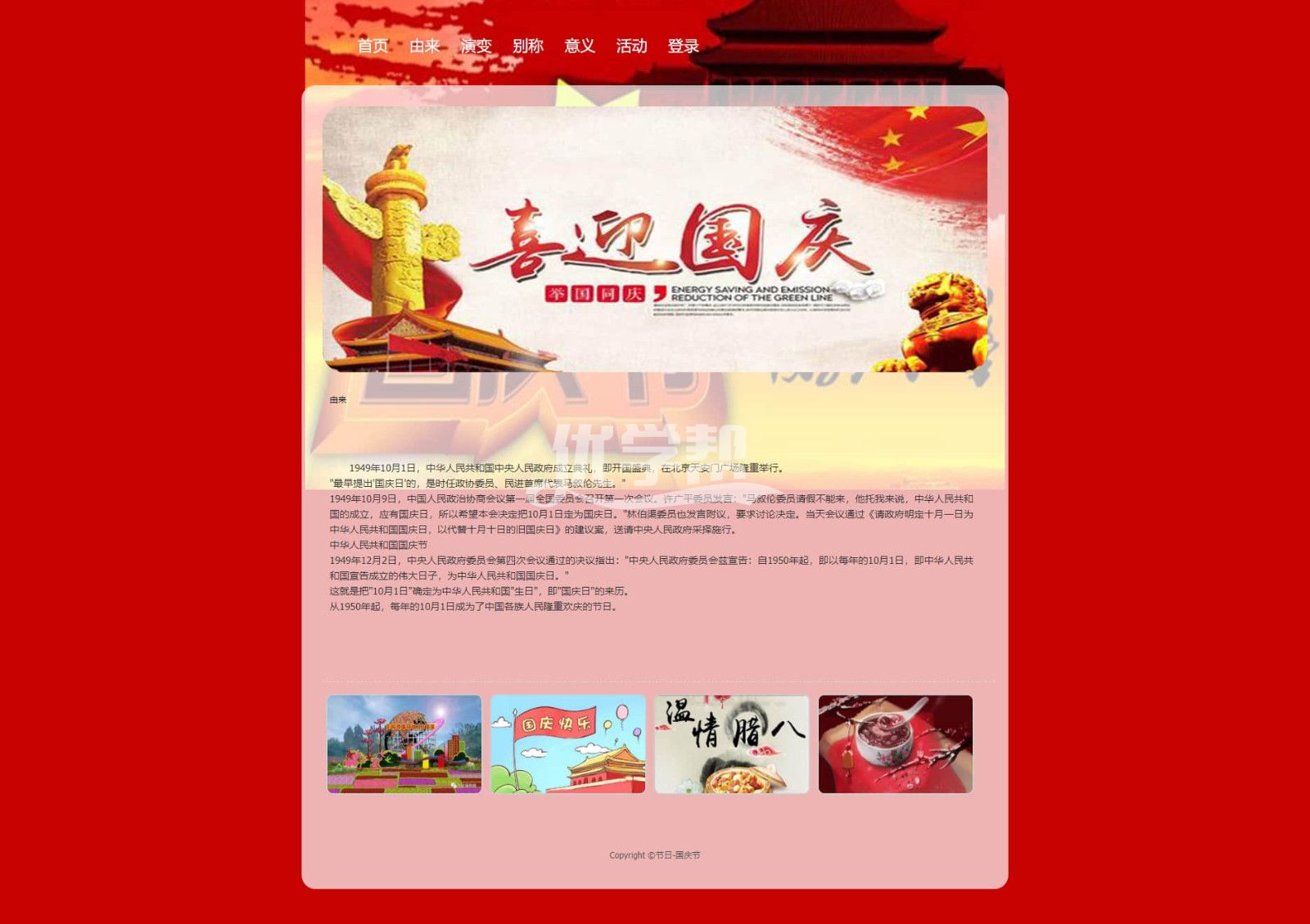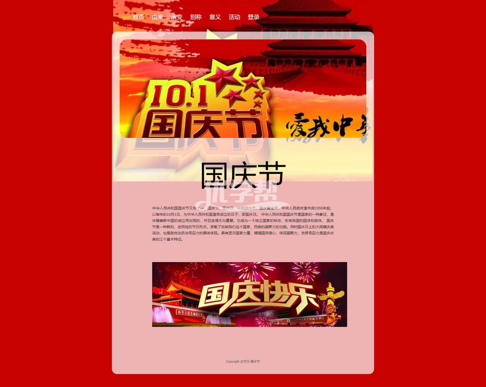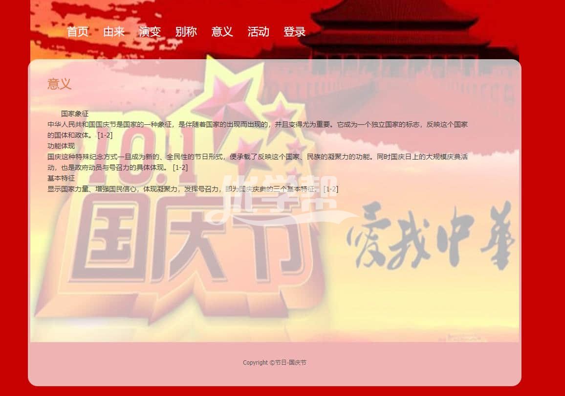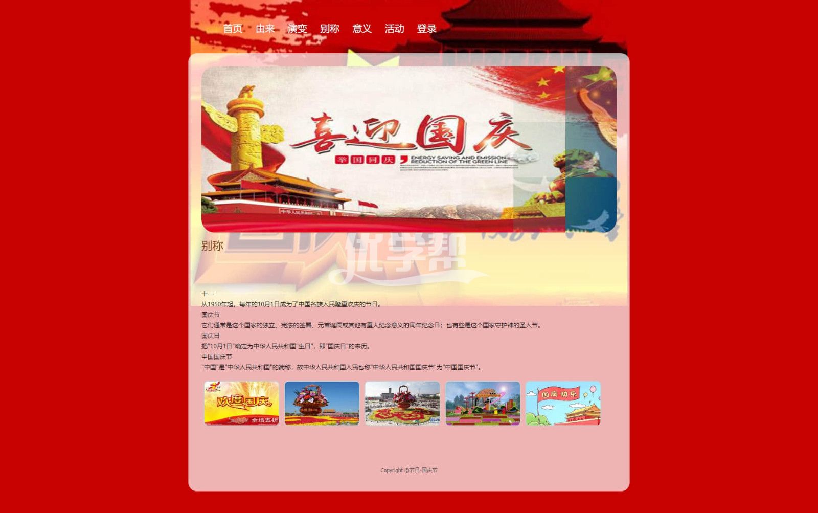 国庆节网页7页简单布局,使用dw软件制作.带js轮播特效 |