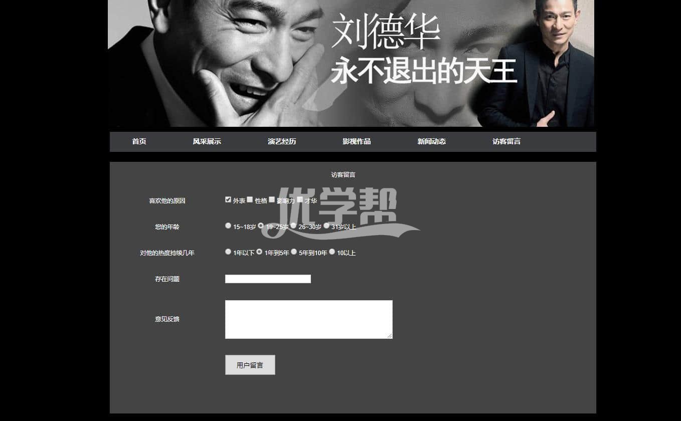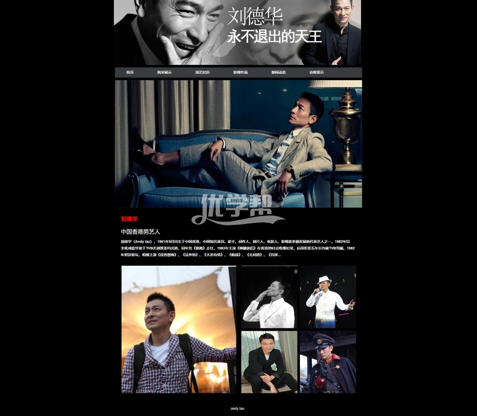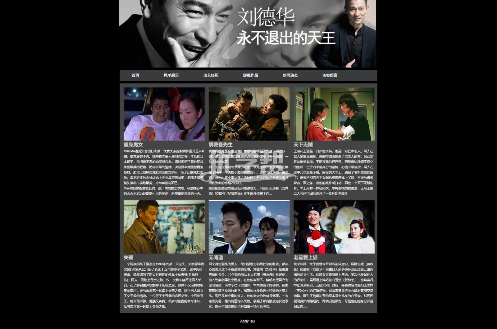 刘德华明星网站6页简单布局div+Css,使用dw软件制作 |
