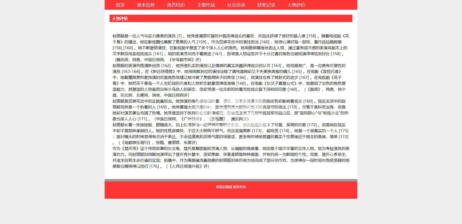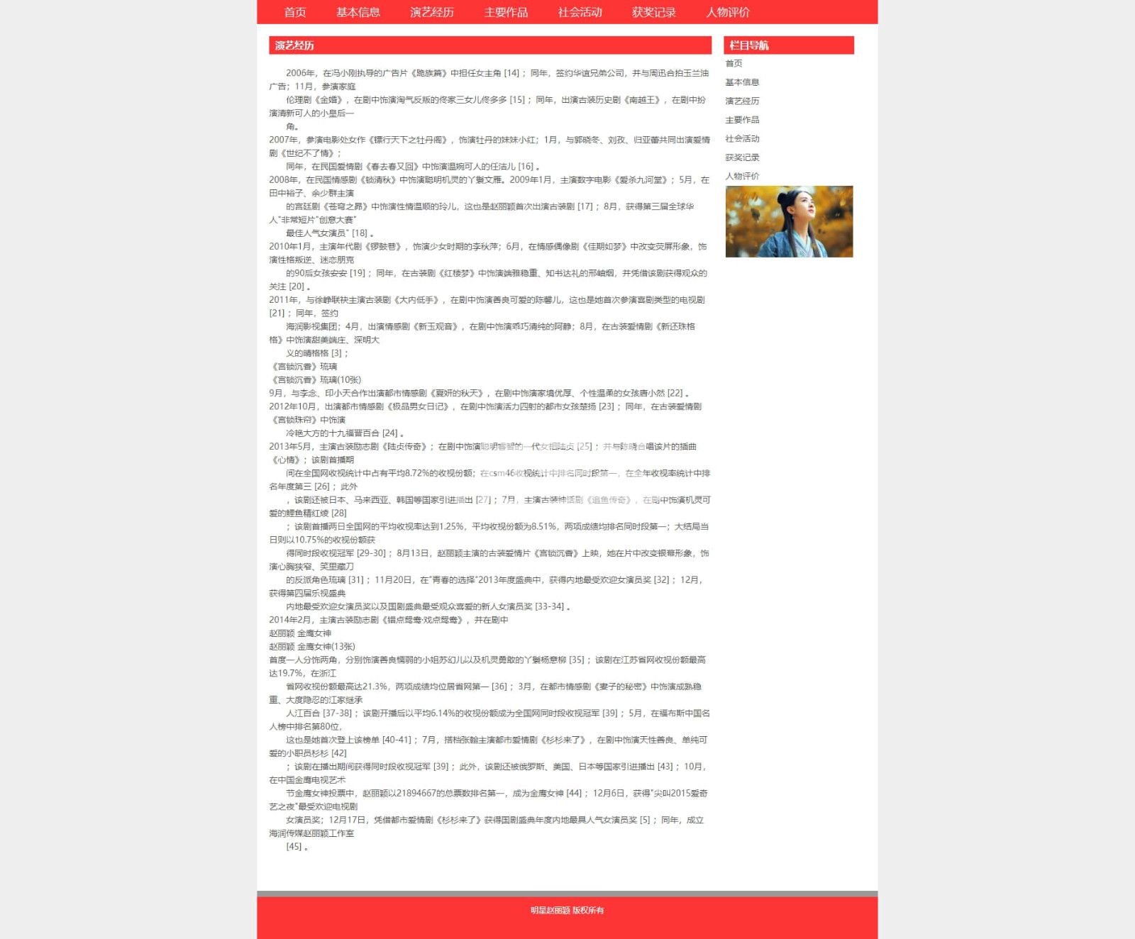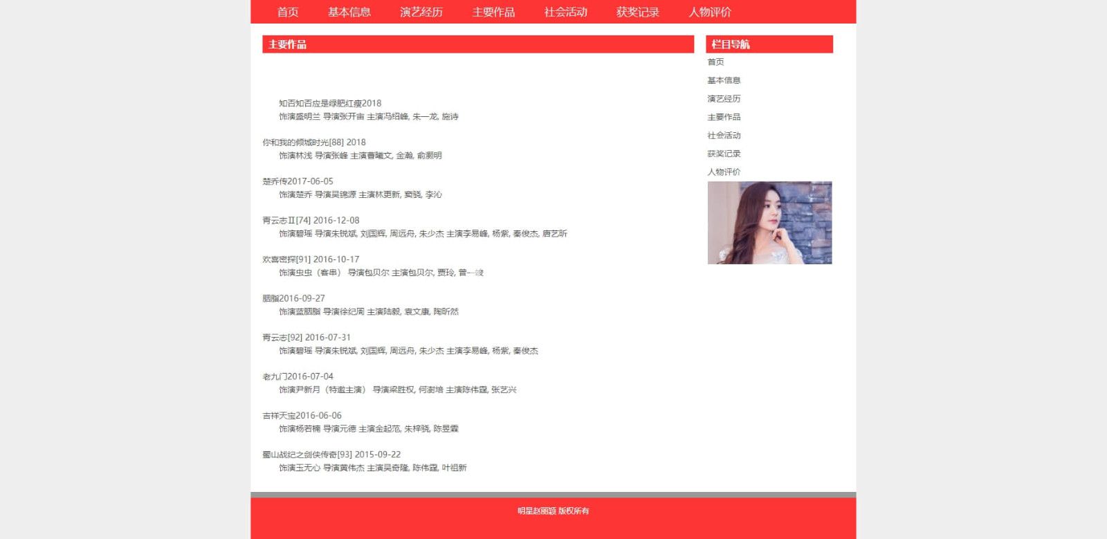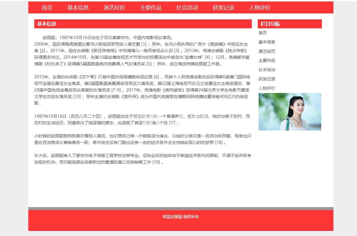 人物明星赵丽颖,简单布局7页,使用dw软件制作,带js滚动图片轮播特效 |