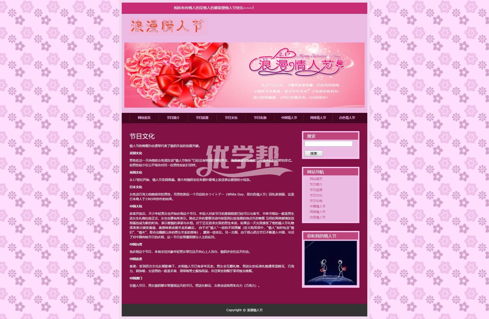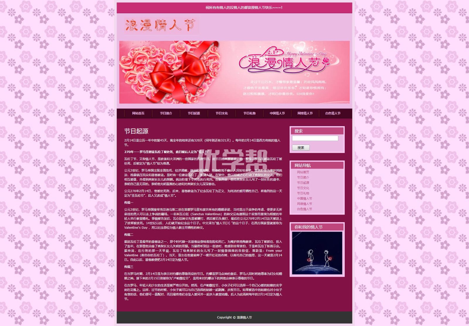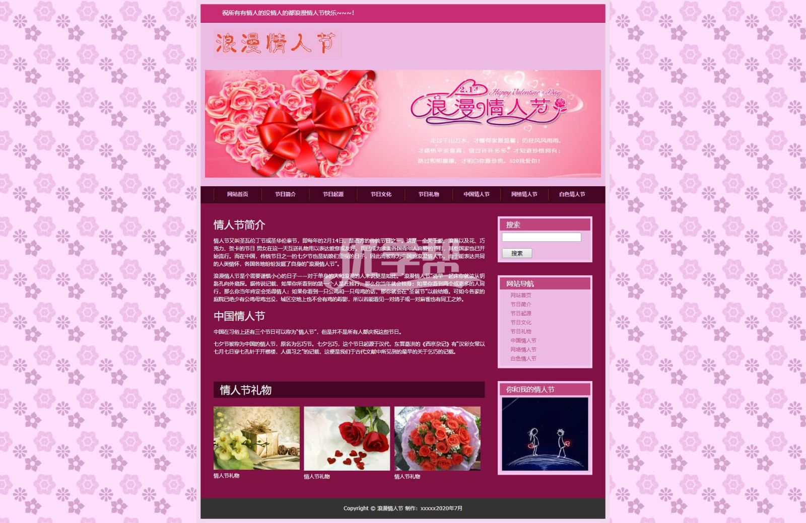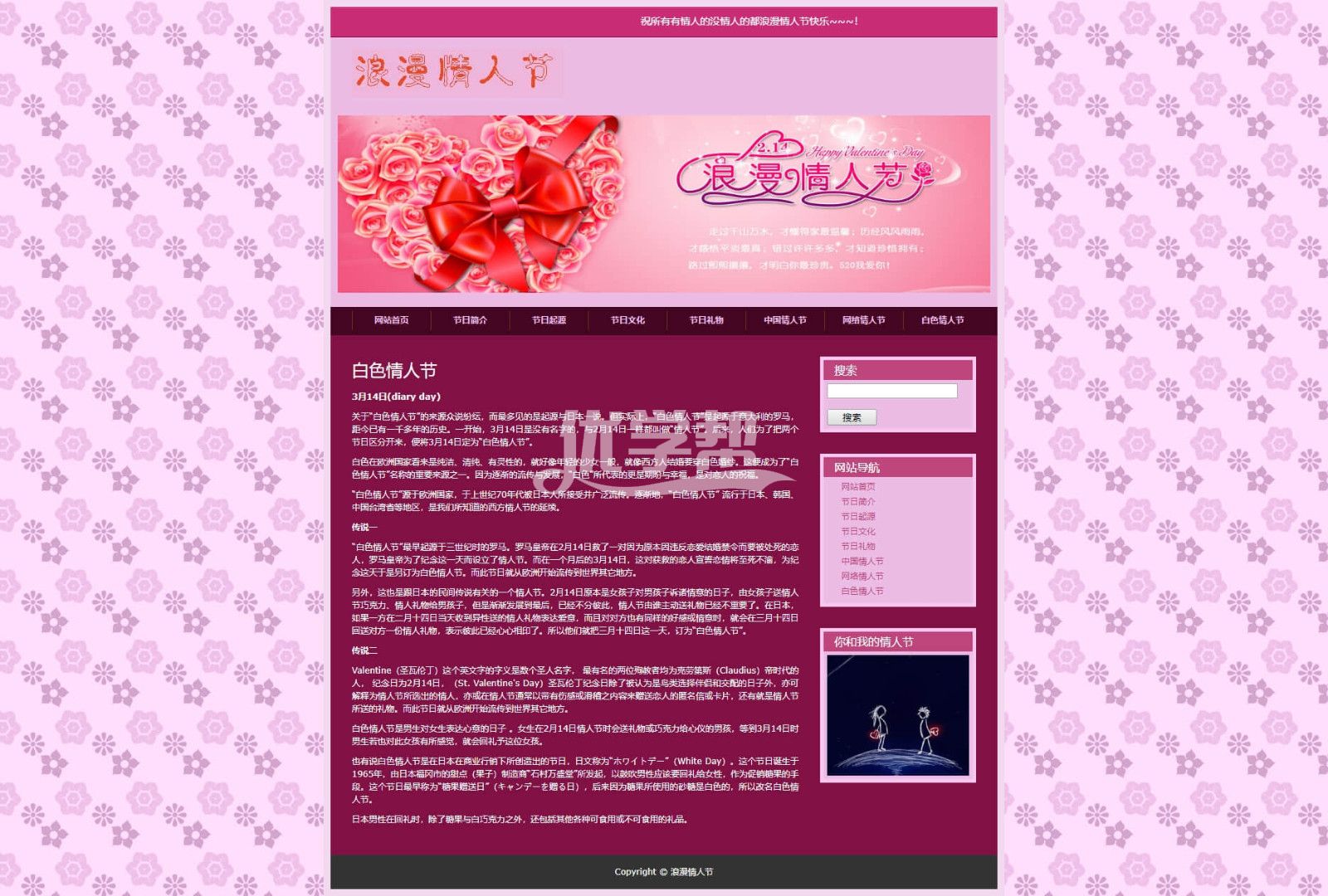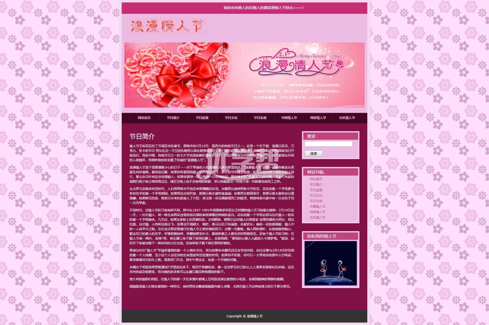 8页情人节,简单布局网页div+Css,带背景音乐 |
