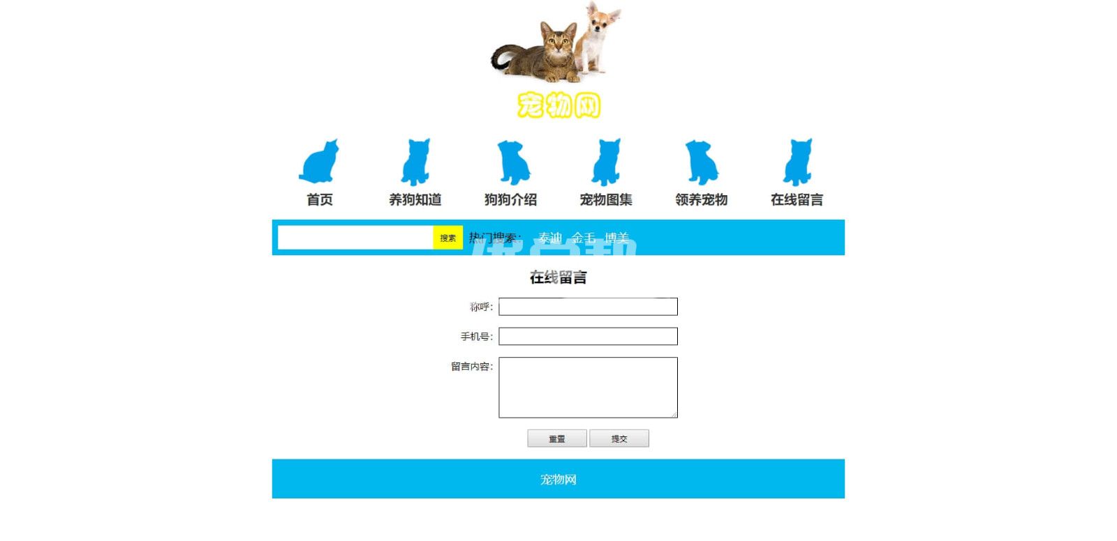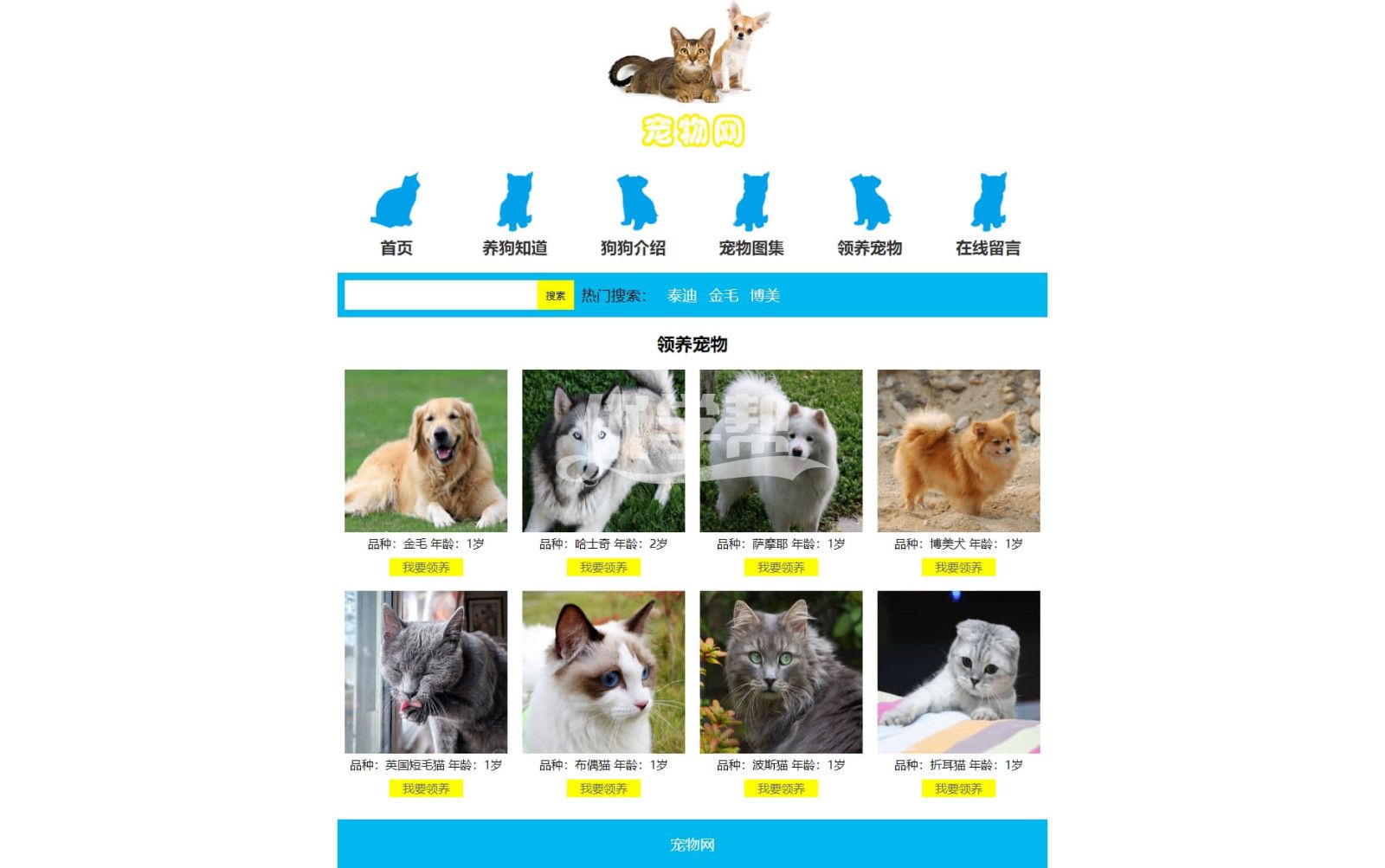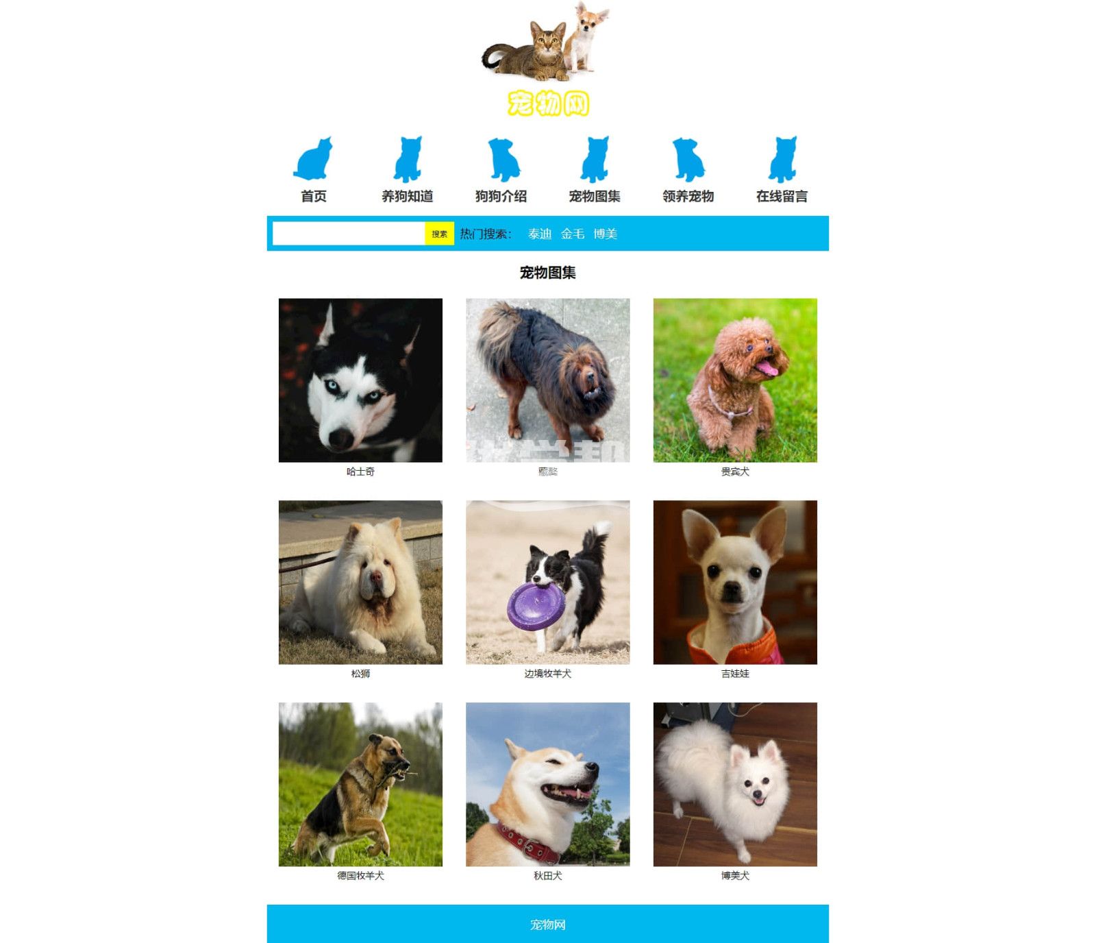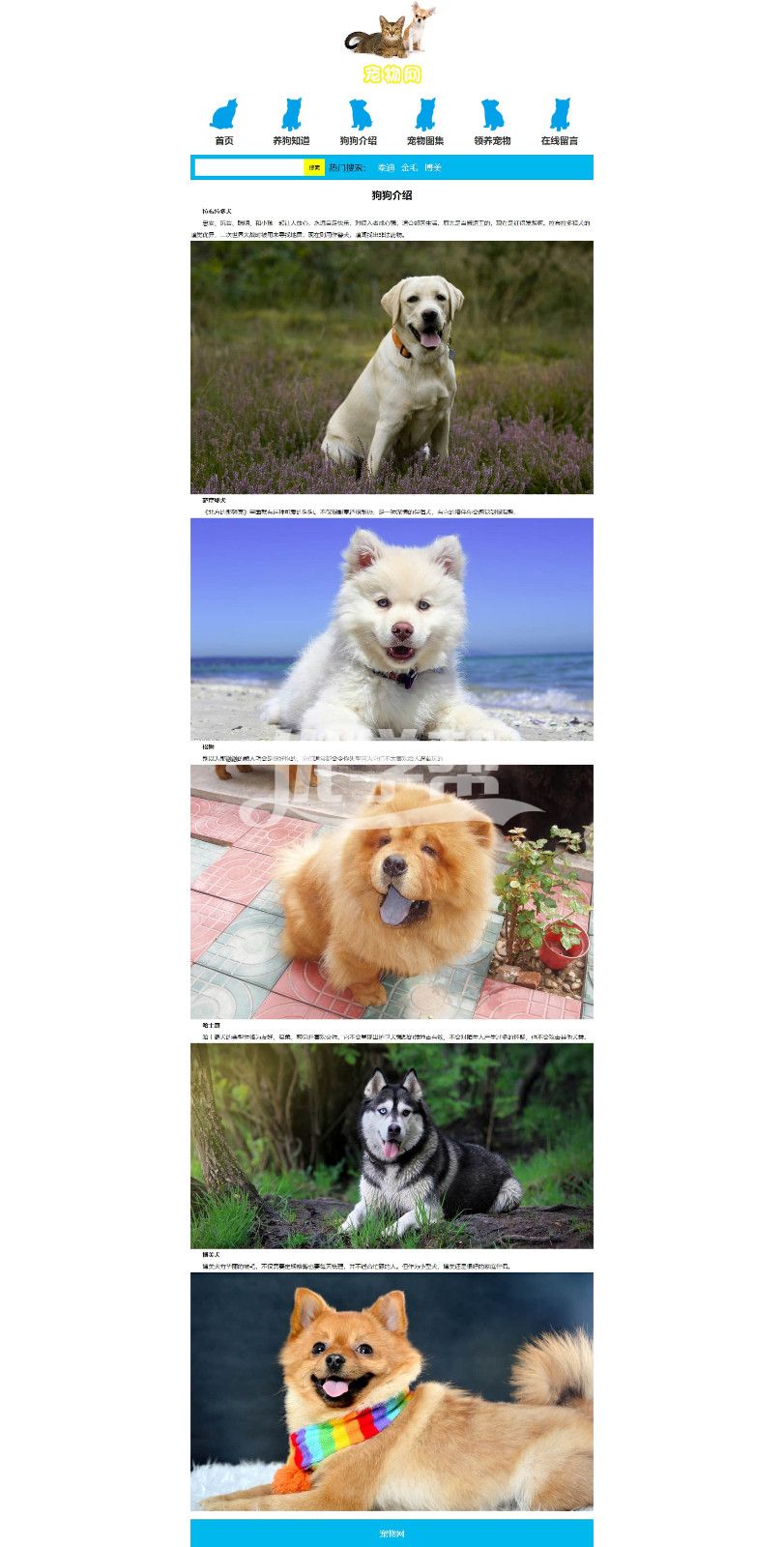 8页宠物网,div+css布局,使用dw软件制作,布局简单。 |