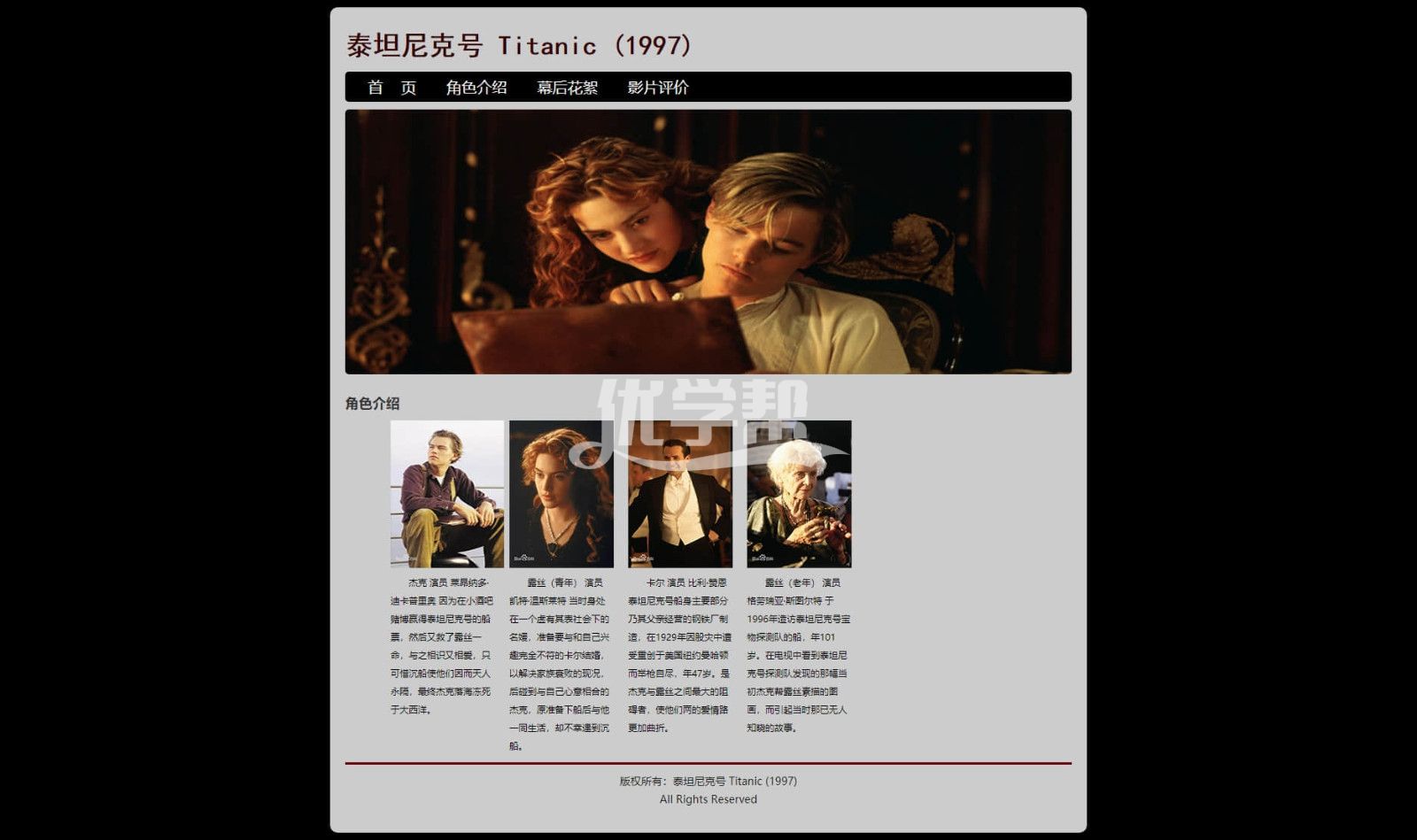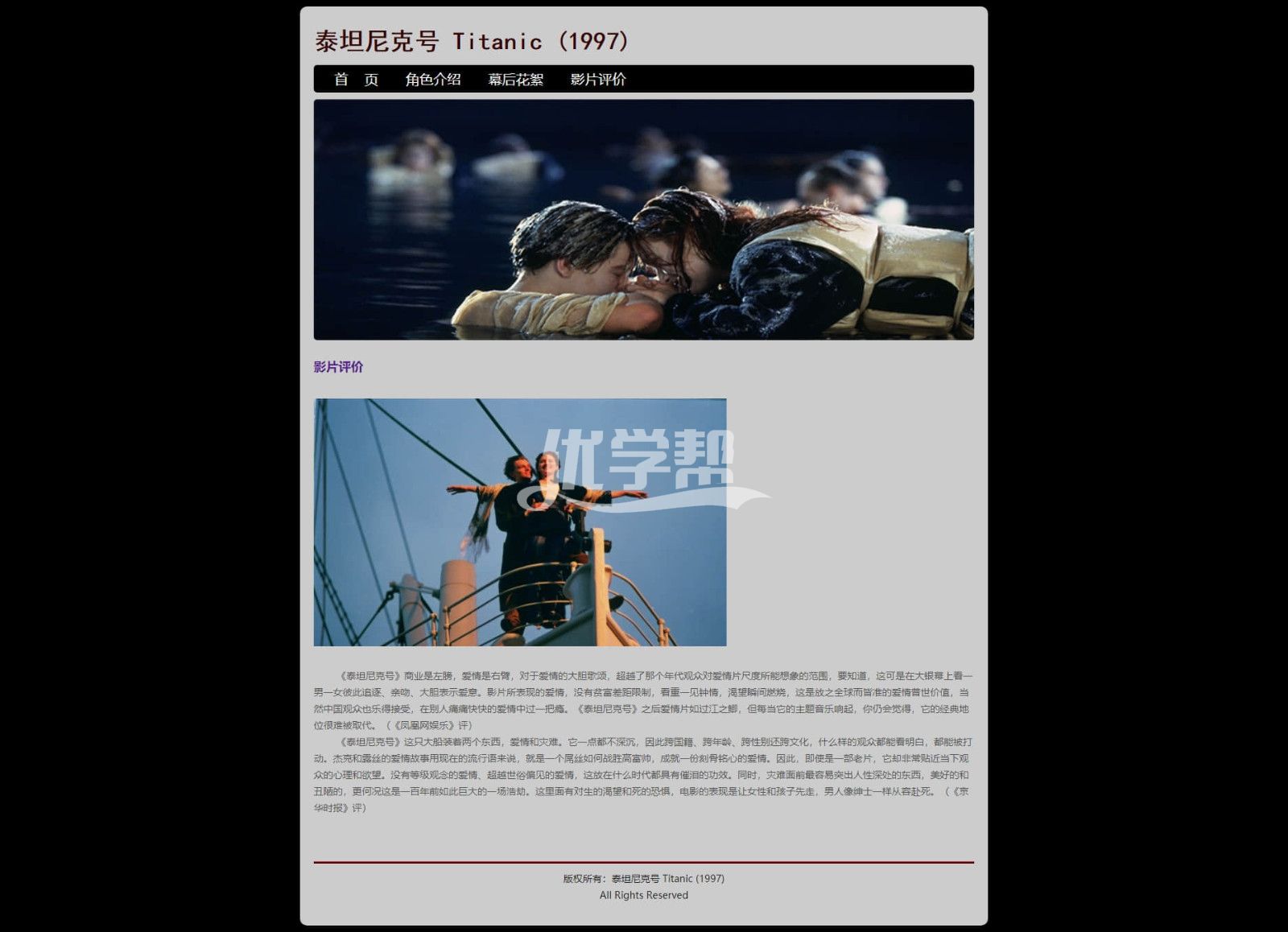 4页泰坦尼克号,滚动图片。背景音乐,布局简单,适合初学者,使用dw软件制作 |