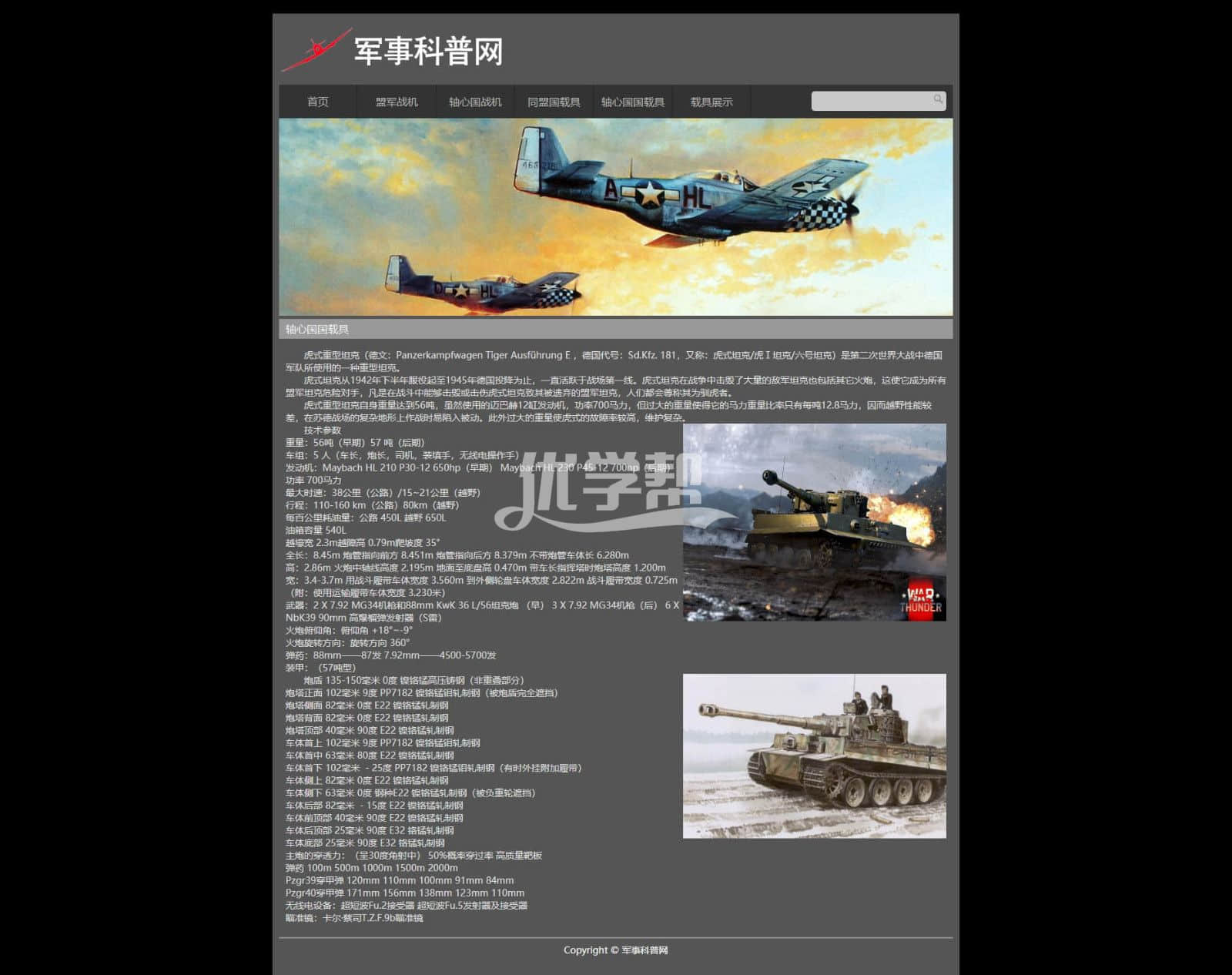 6页军事科普主题网站,带背景音乐,dw制作 |