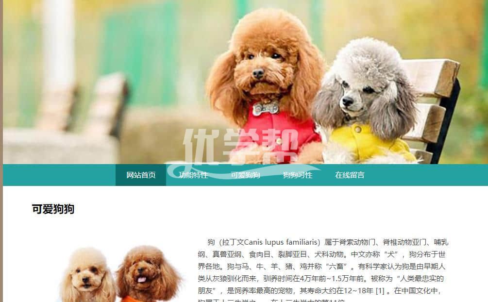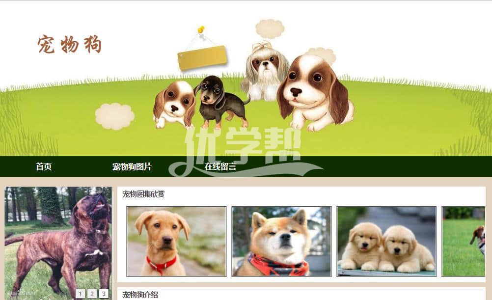 宠物百科单页,采用简单的布局,适合初学者。使用|Dreamweaver软件制作
