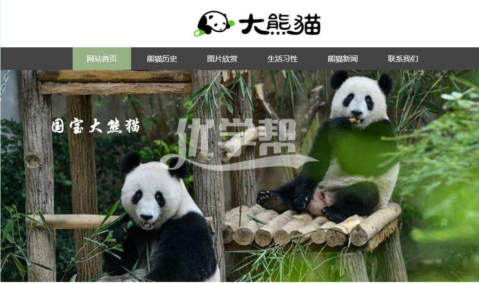 国宝大熊猫主题网站6页,使用dw软件制作。布局简单,有js轮播特效。图片滚动。适合网页初学者