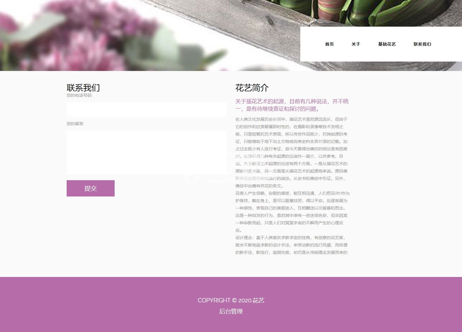 php花卉网站,带后台功能、留言功能